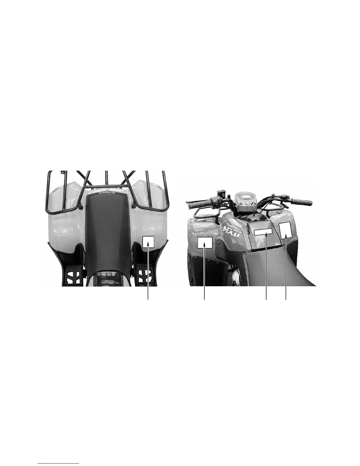 KYMCO MXU 50 - WARNING AND SPECIFICATION LABELS LOCATION; LABEL PLACEMENT DIAGRAM