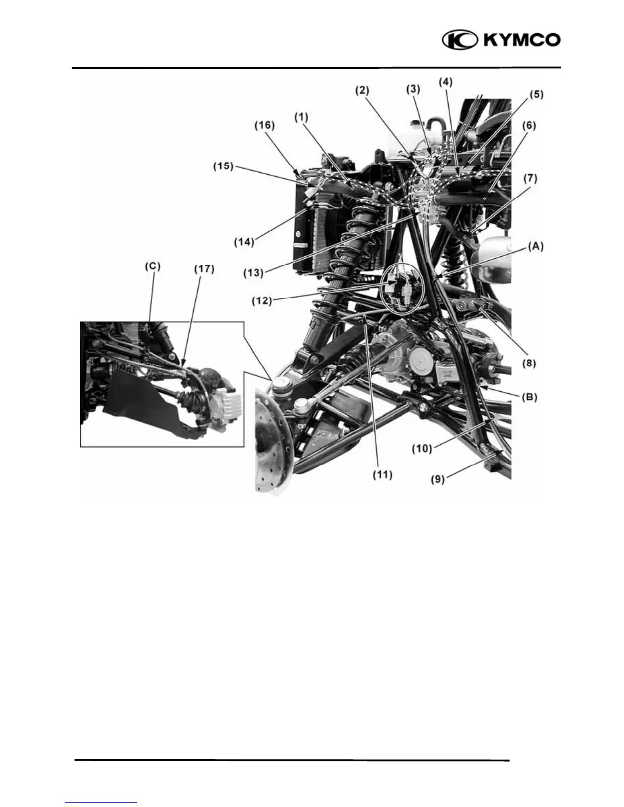 (8) Brake fluid joint (OFF ROAD) (17) Front brake hose
