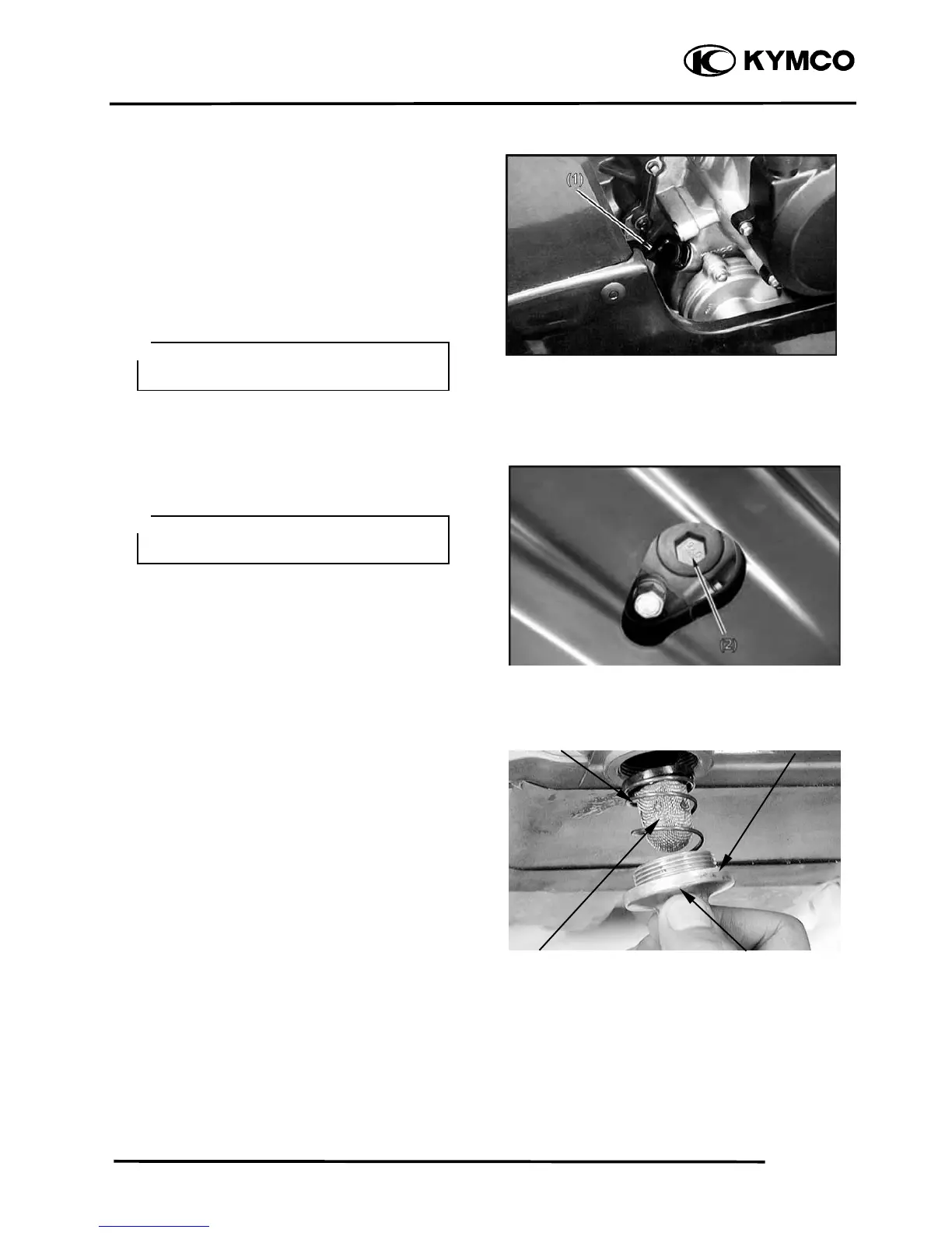 5. Remove the oil filter cap (2) to drain the