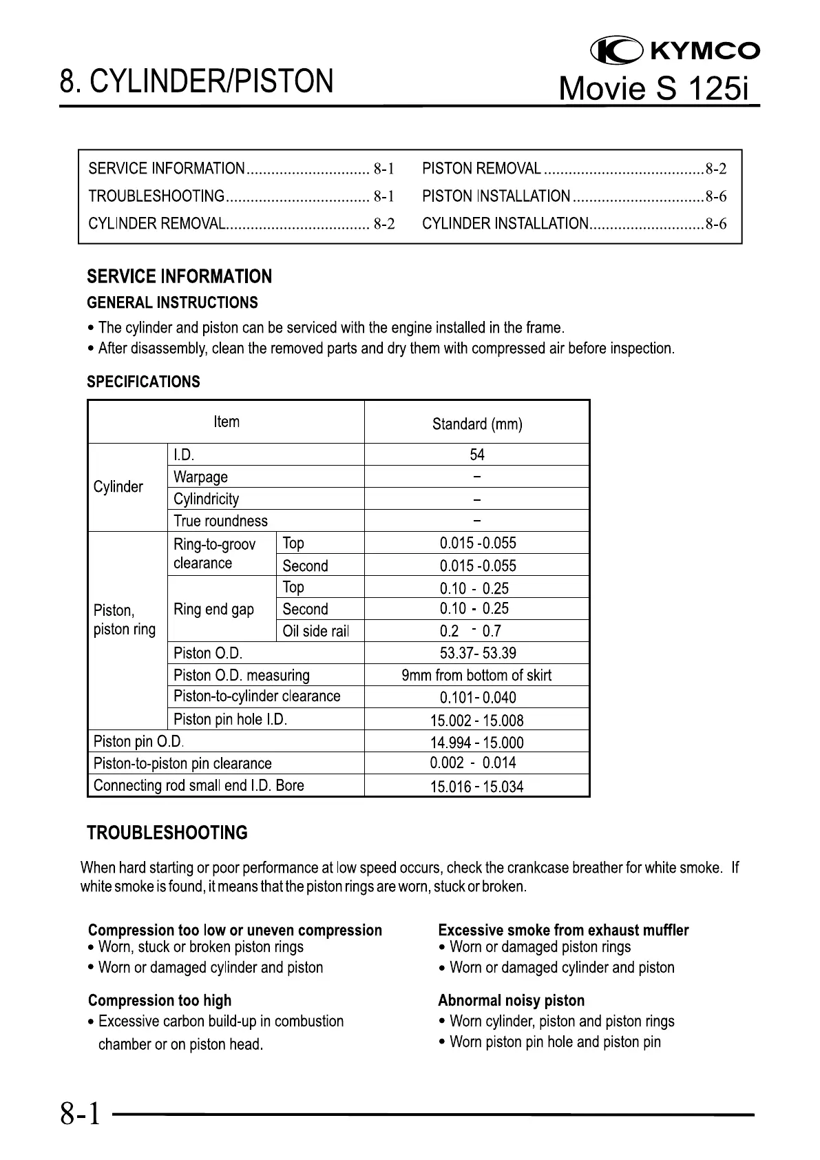 KYMCO SR25BA - Troubleshooting Cylinder;Piston Issues