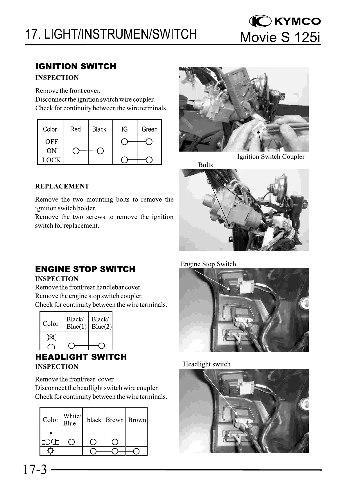 KYMCO SR25BA - Headlamp Bulb Replacement; Tail;Brake;Turn Signal Bulb Replacement