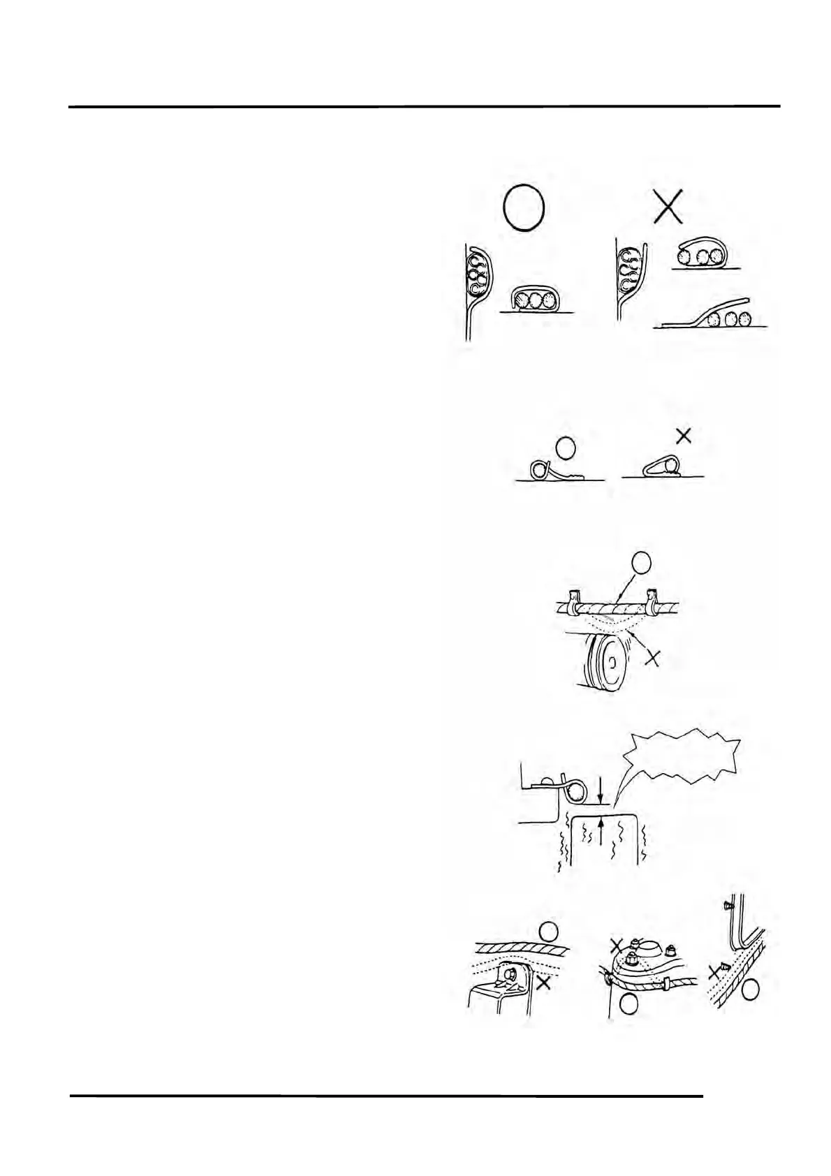 When fixing the wire harnesses, do not