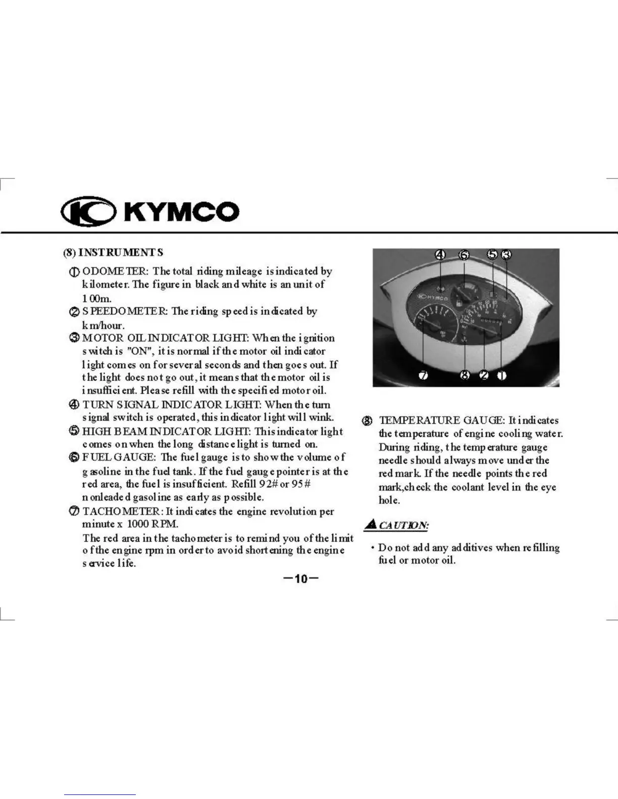 KYMCO Super 9 - KYMCO Motorcycle Pre-Ride Inspection Guide; Dashboard Instruments Overview