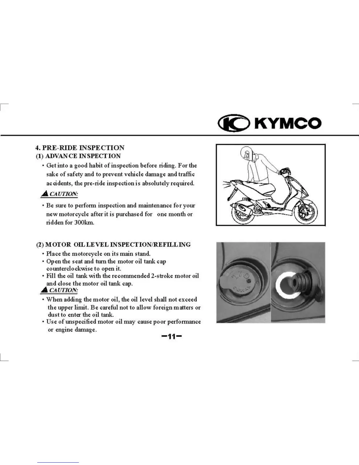 KYMCO Super 9 - Importance of Advance Inspection; Motor Oil Level Check and Refill
