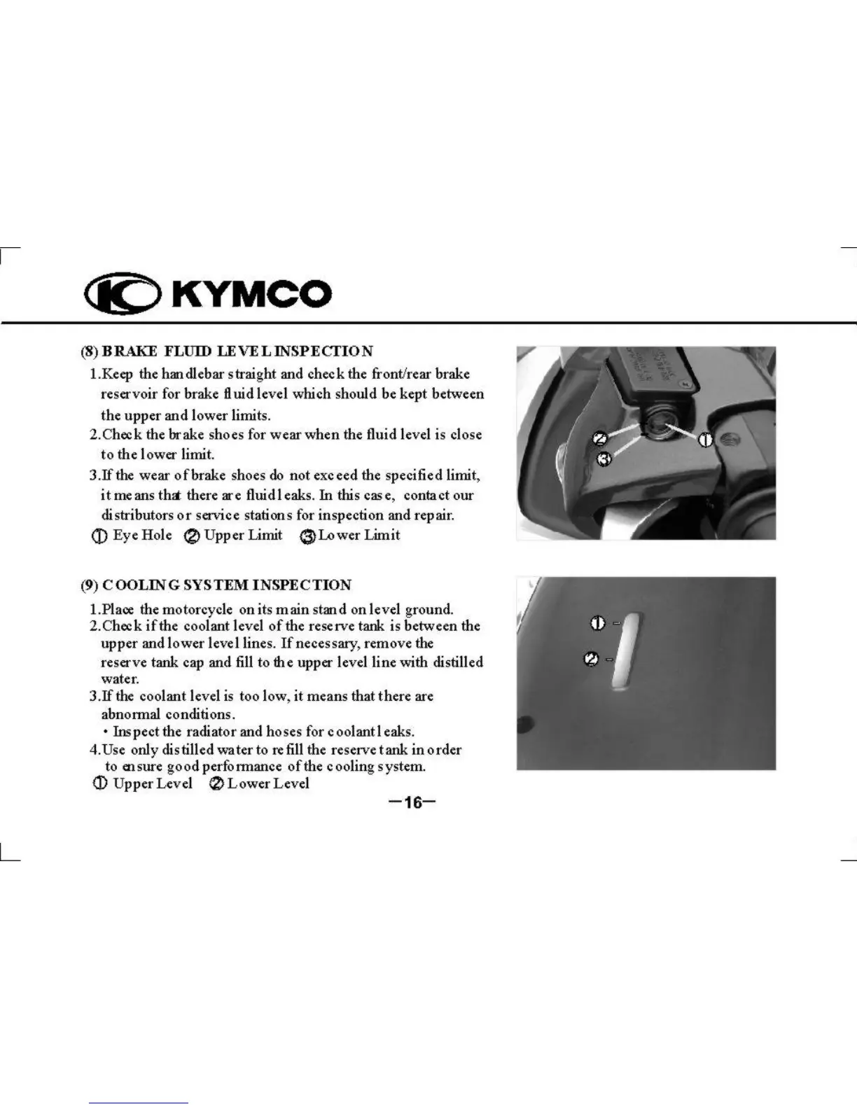 KYMCO Super 9 - Brake Fluid Level Inspection; Cooling System Inspection