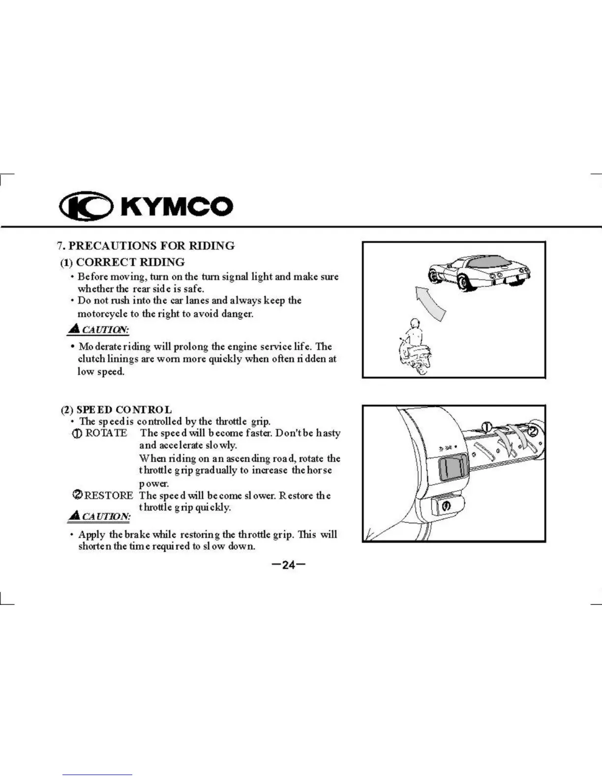 KYMCO Super 9 - KYMCO Motorcycle Riding Precautions; Correct Riding Practices; Speed Control Techniques