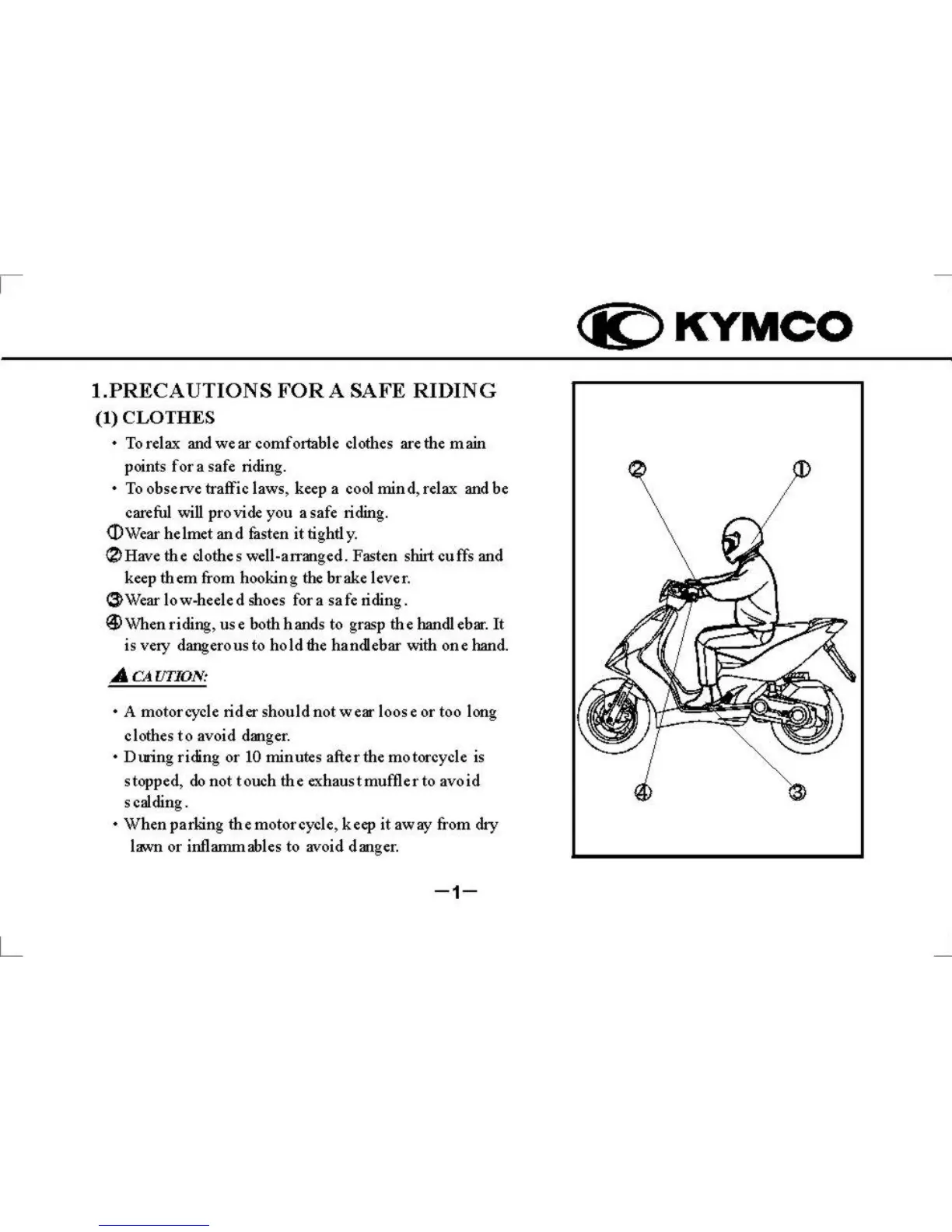 KYMCO Super 9 - KYMCO Motorcycle Safety Precautions; Riding Attire Essentials