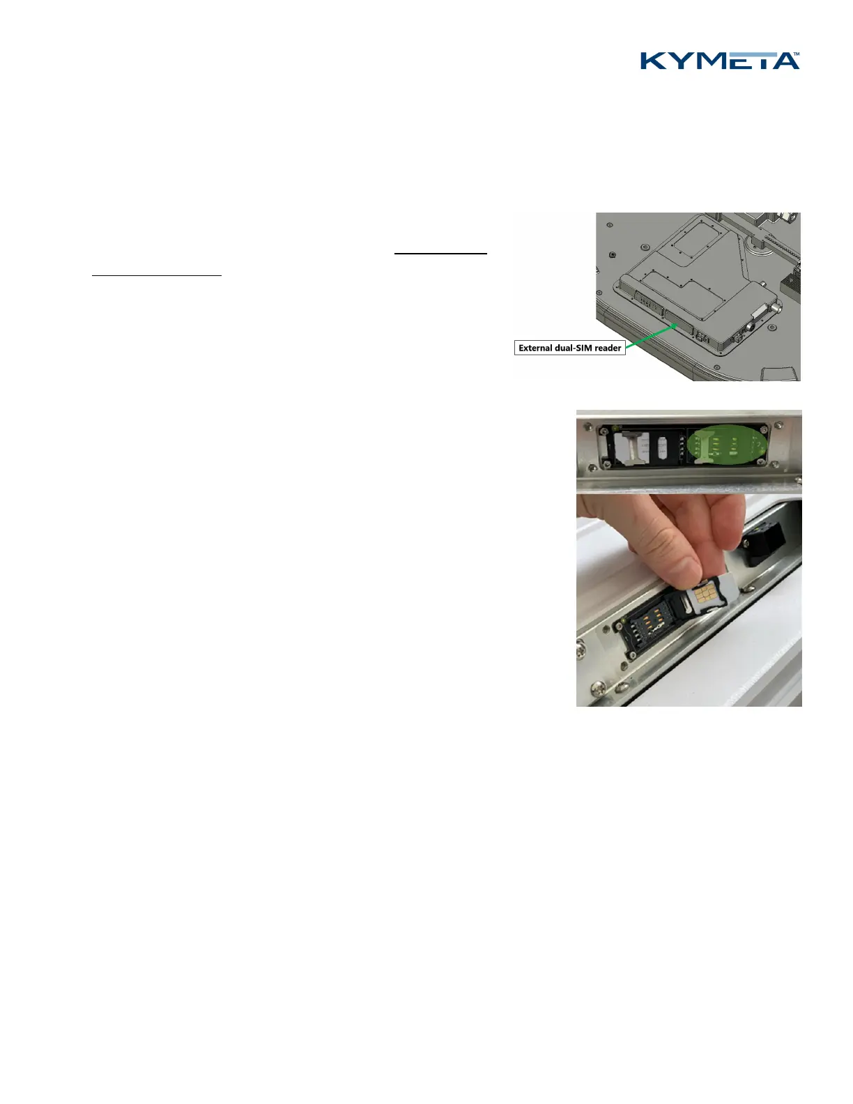 Enable second SIM WAN through Kymeta Access application or portal or contact Kymeta customer support.