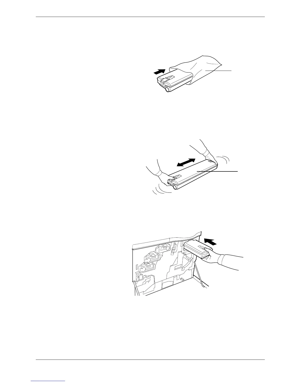 Put the old toner container in the plastic waste bag (contained in the toner kit) and