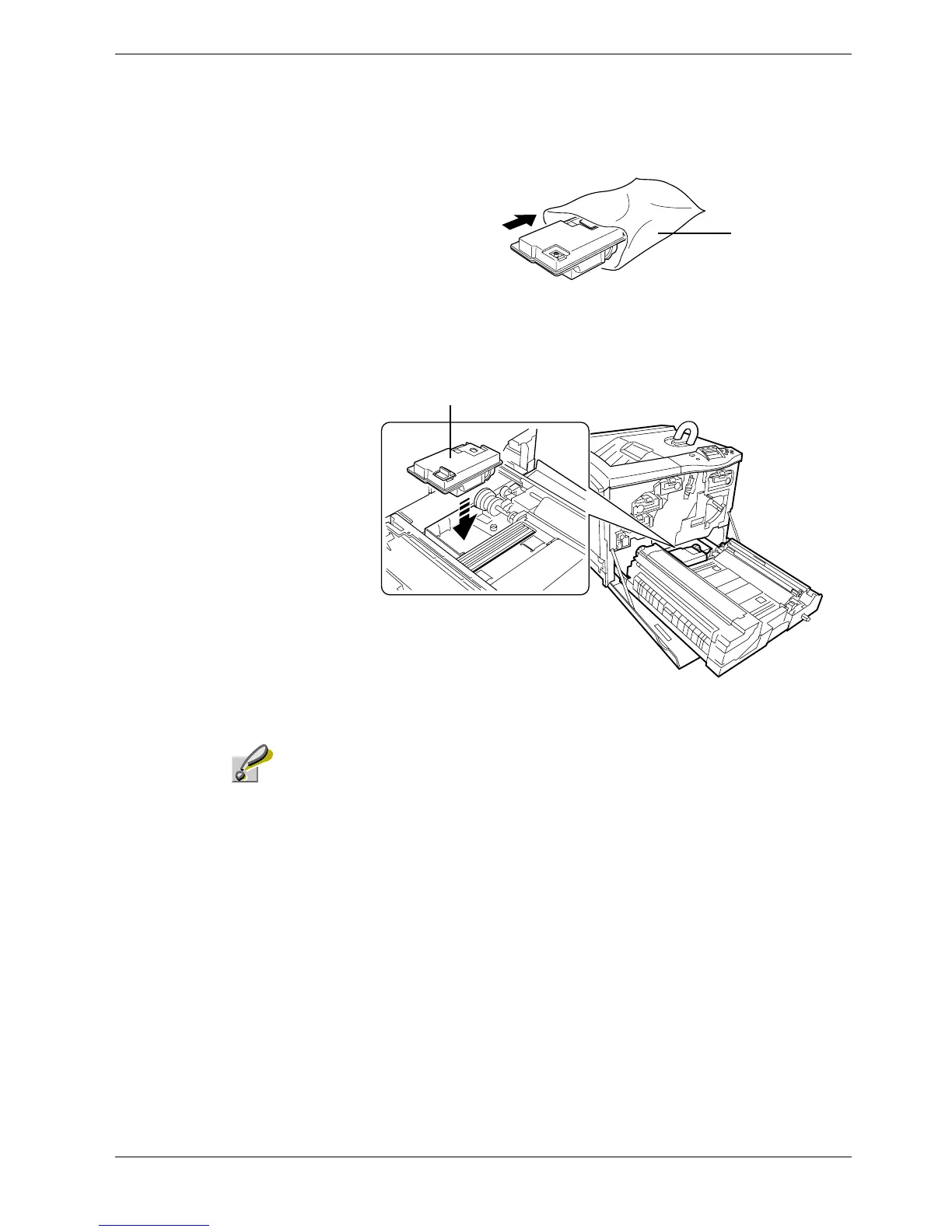 Insert the new waste toner box (contained in the toner kit) upright until it snaps into
