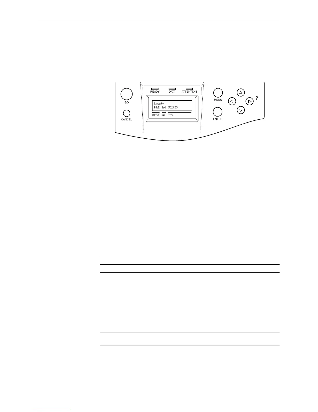 The operator panel on the top of the printer has a 2-line by 16-character liquid crystal