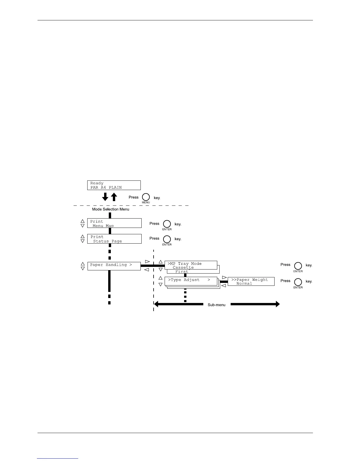 Press the MENU key when Ready is indicated on the printer message display.