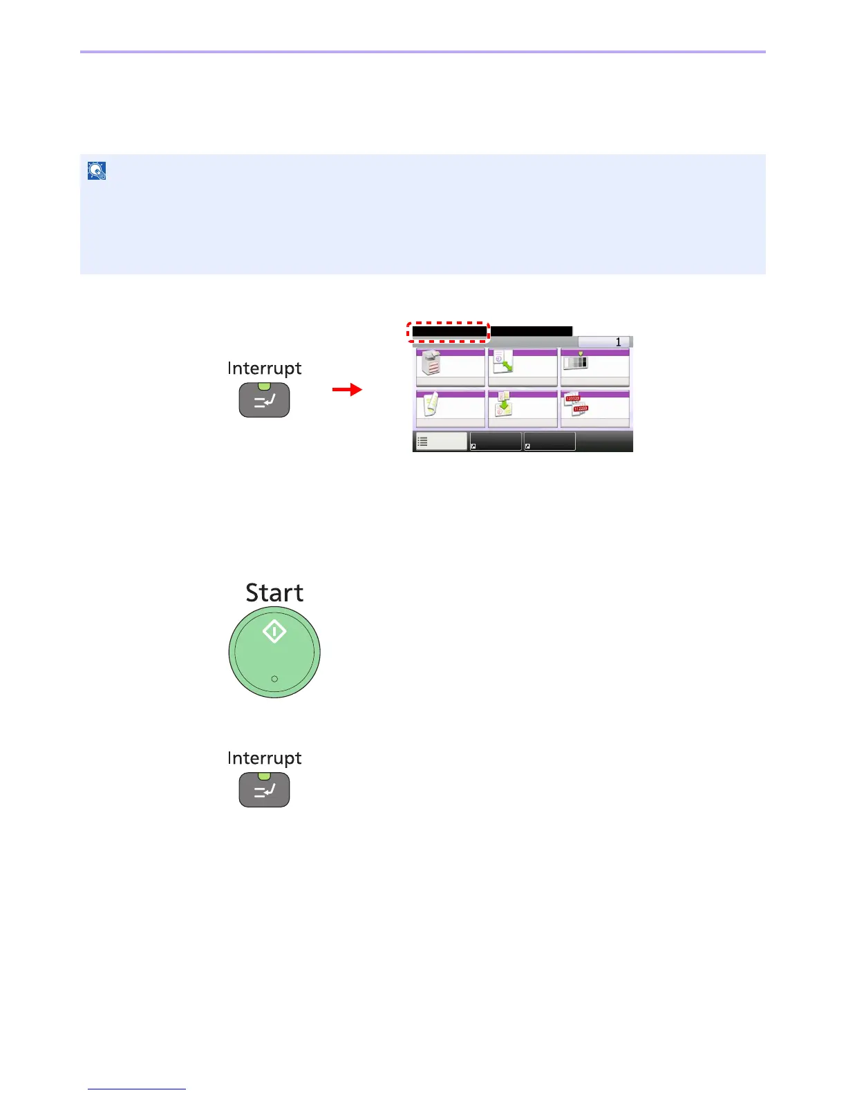 2 Press the Start key to start interrupt copying.