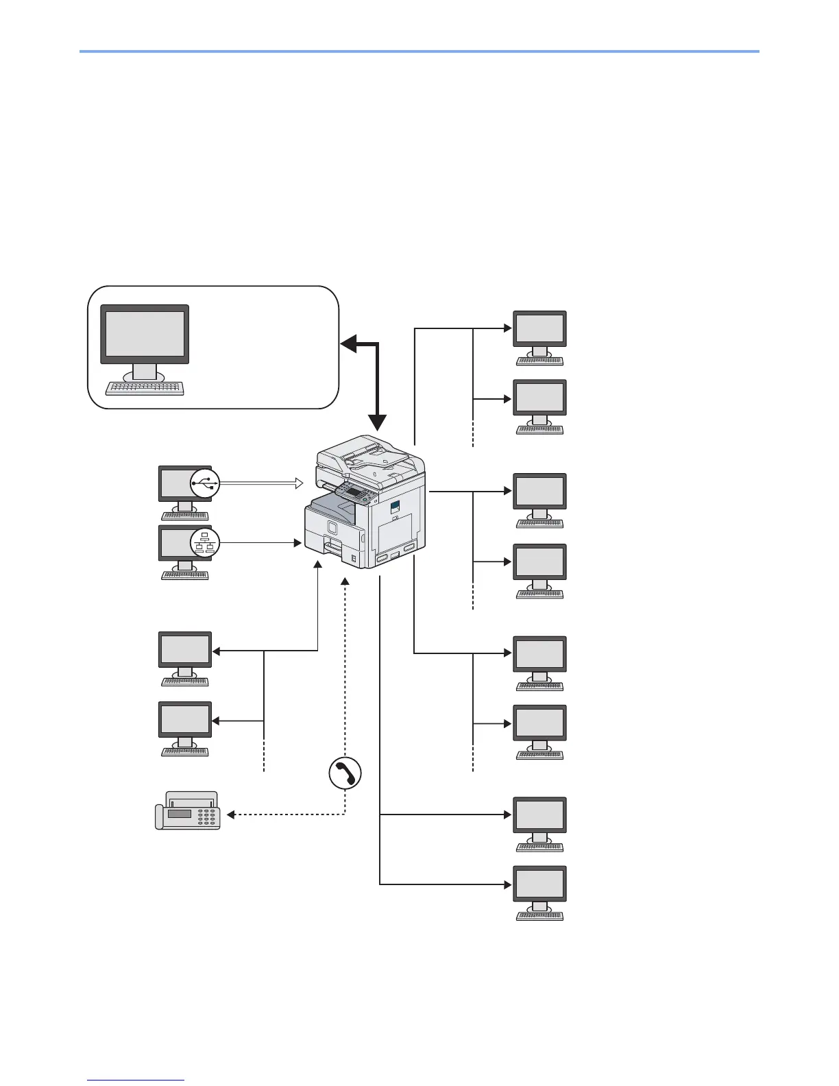 Determine the method to connect the equipment to a PC or network by referring to the illustration below.