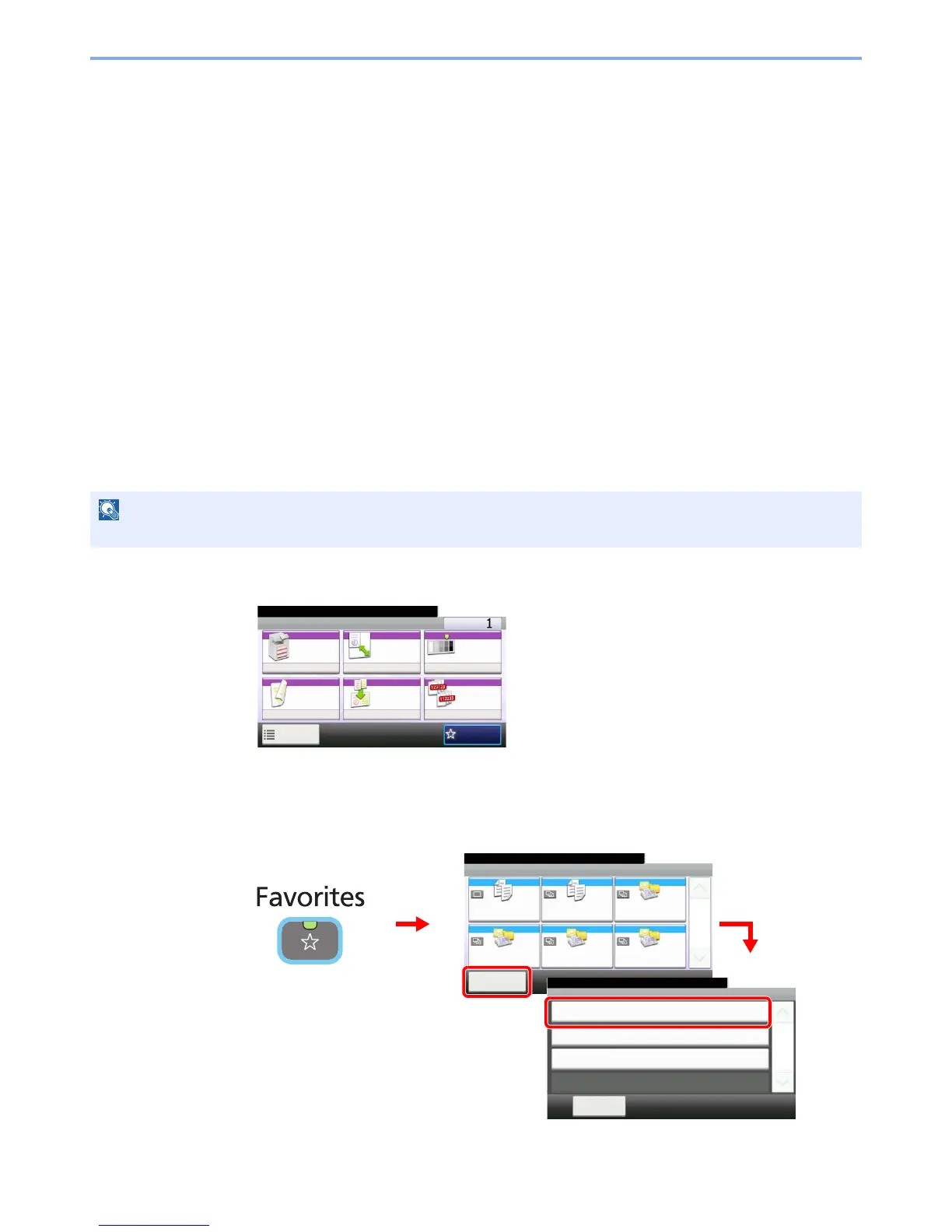 Frequently used functions can be registered as favorites so that they can be called up easily.