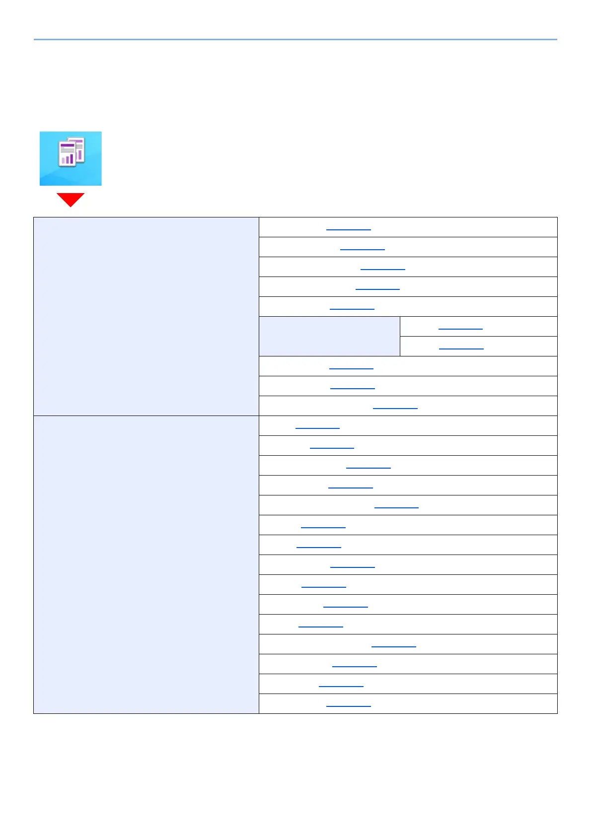 This is a list of menus displayed on the touch panel. Depending on the settings, some menus may not be displayed.