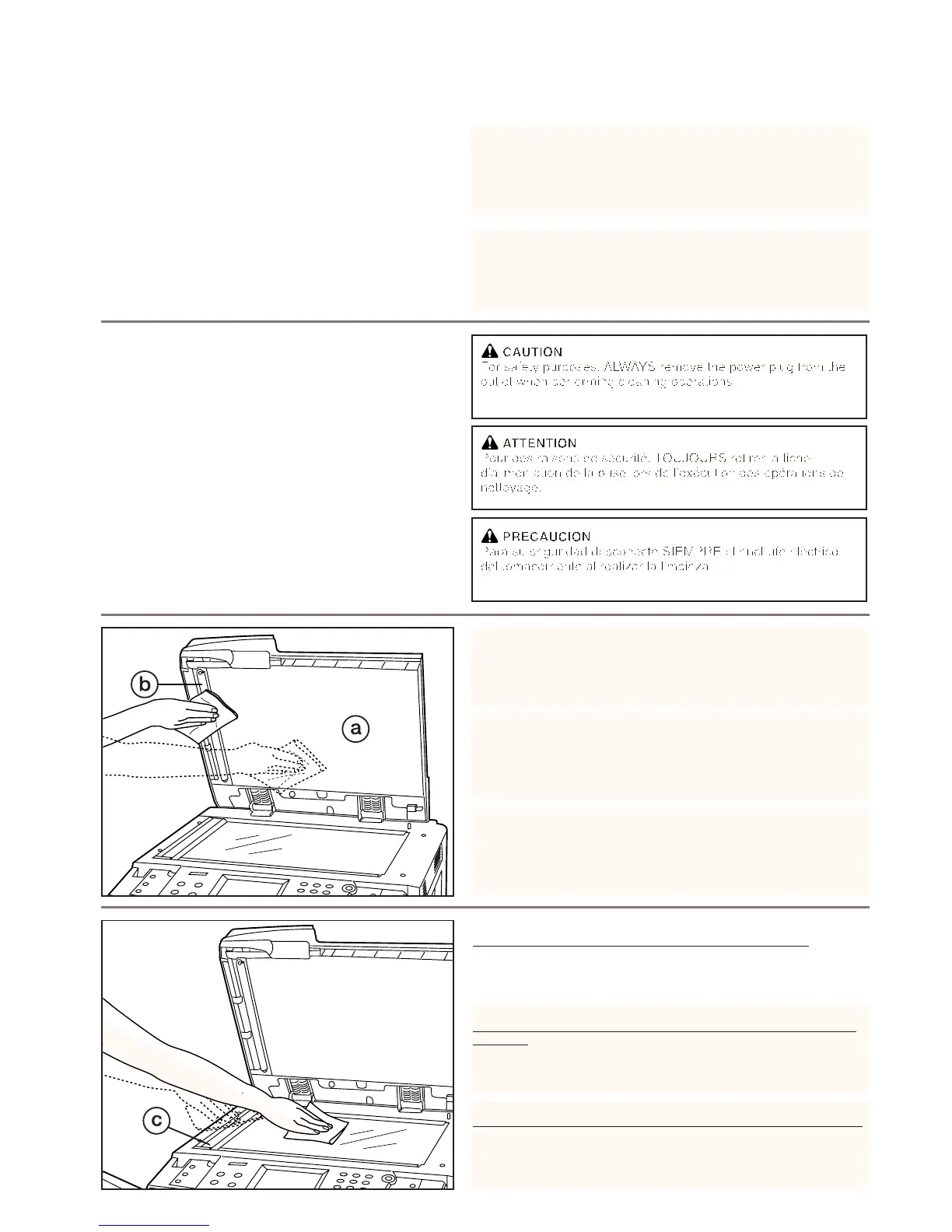 1. Soulever le DF pour l'ouvrir. Essuyer le couvercle d'original a, le