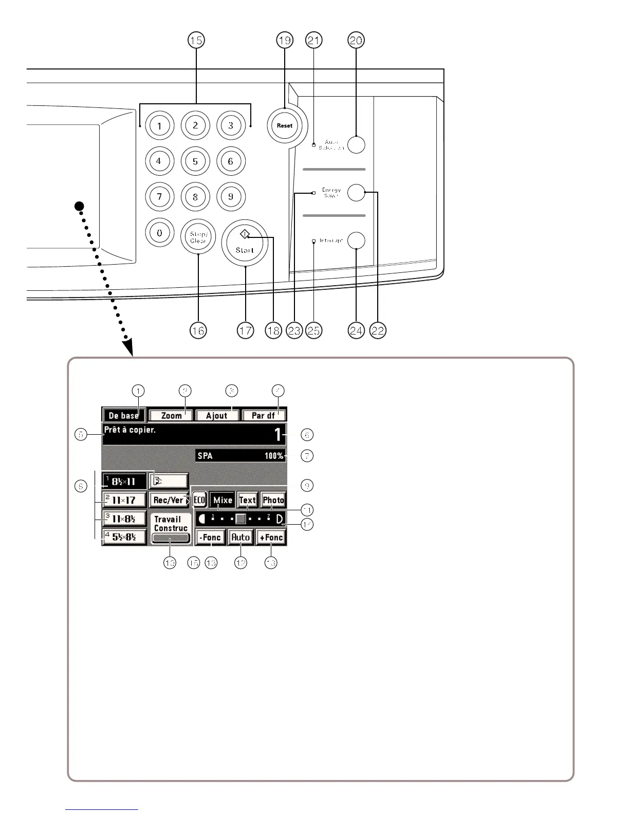 (Effleurer cette touche pour changer le taux de zoom de copie.