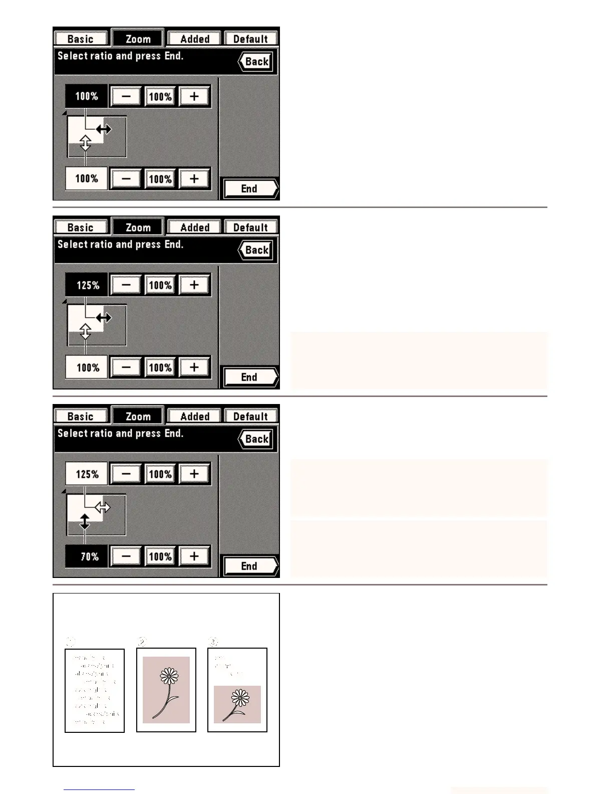 5. Set the zoom ratio of width (Y) by touching the lower “+” key or “-” key.