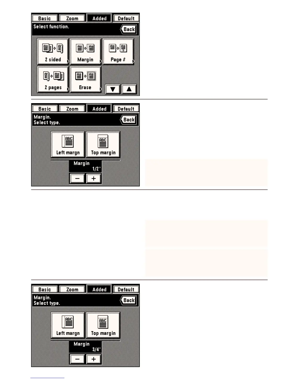 4. When changing the margin width setting, touch the key “+” or “-” under