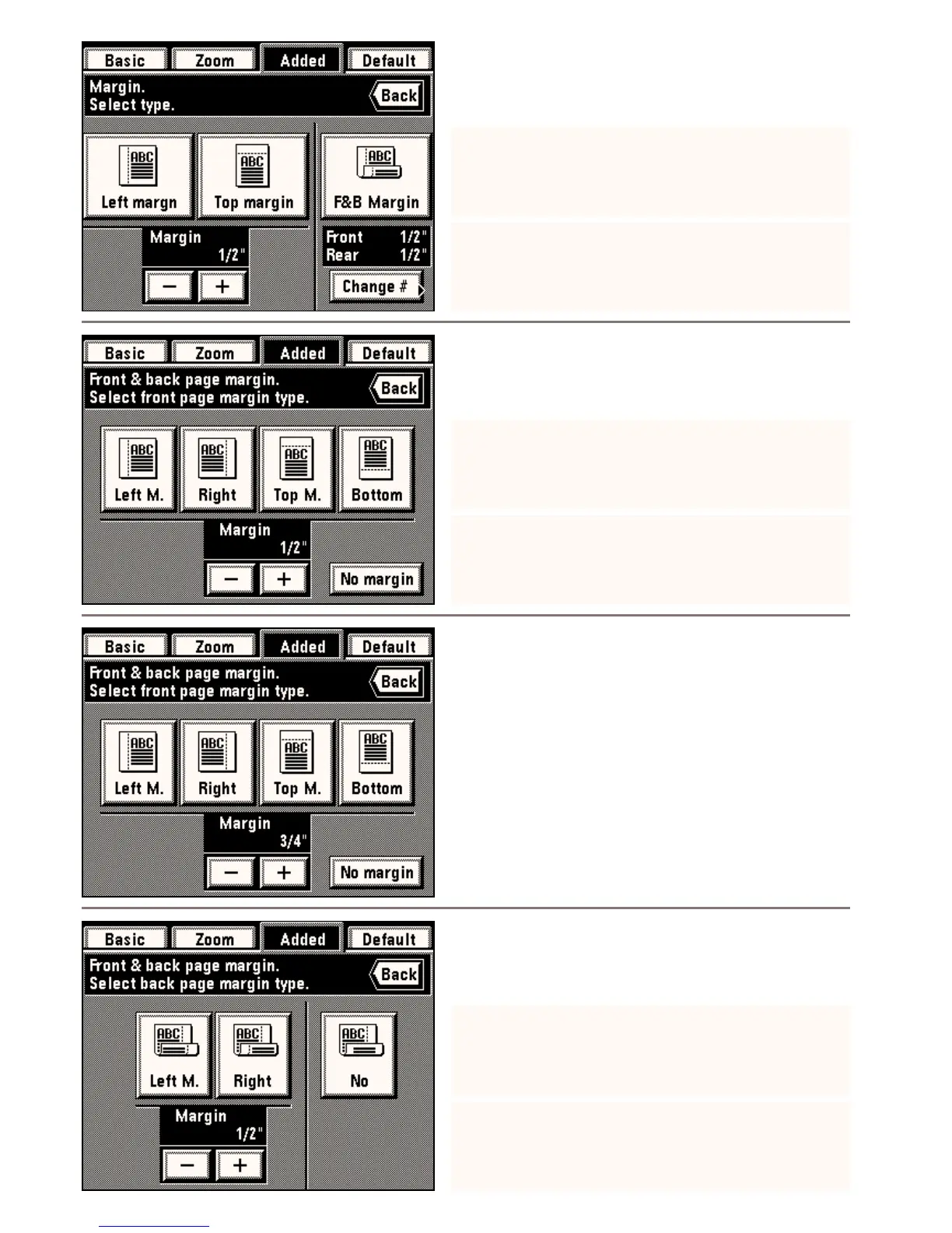 7. Select the margin width on the front side by touching the “+” key or “-” key