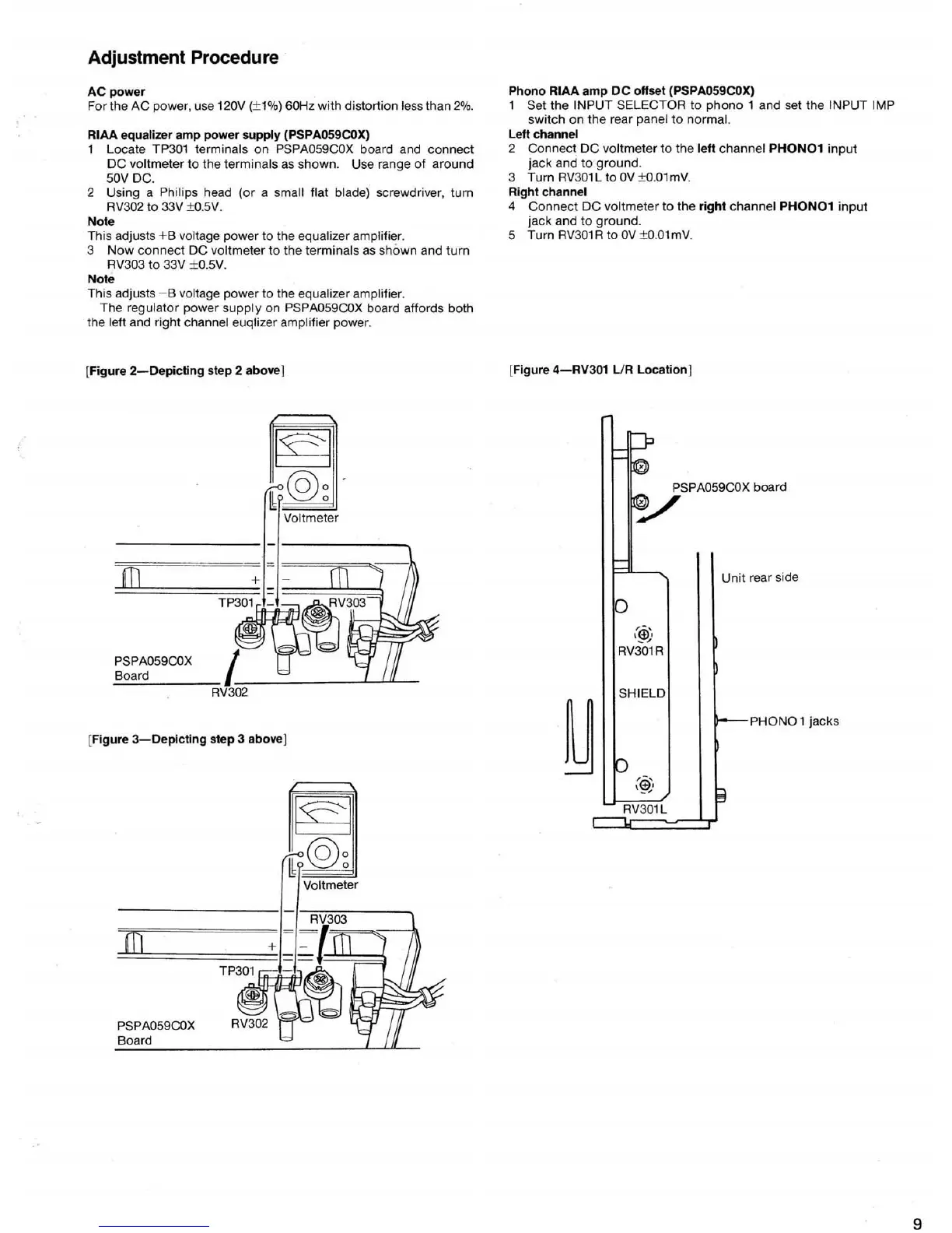 Kyocera A-710 - Adjustment Procedure; AC Power; RIAA Equalizer Amp Power Supply (PSPA059 C0 X); Phono RIAA Amp DC Offset (PSPA059 C0 X)