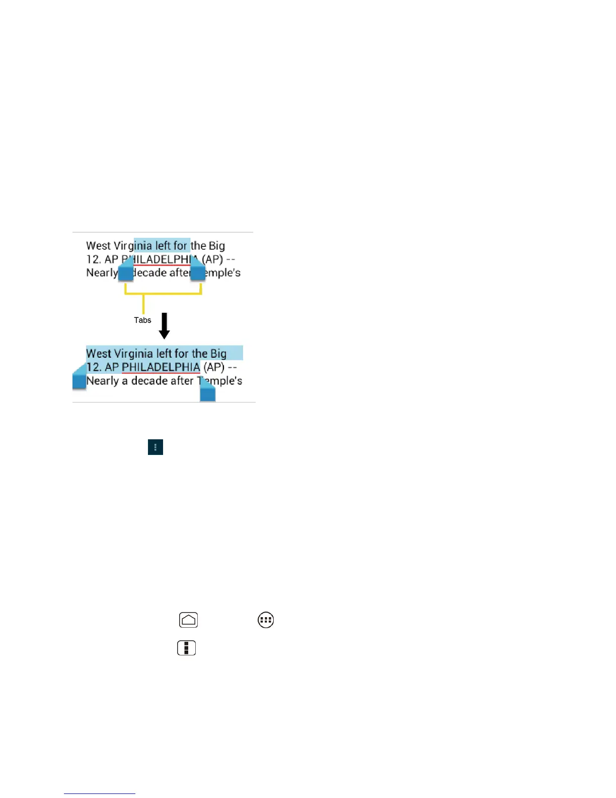 2. Touch and hold the text you want to copy. Drag tabs to expand or reduce the range of