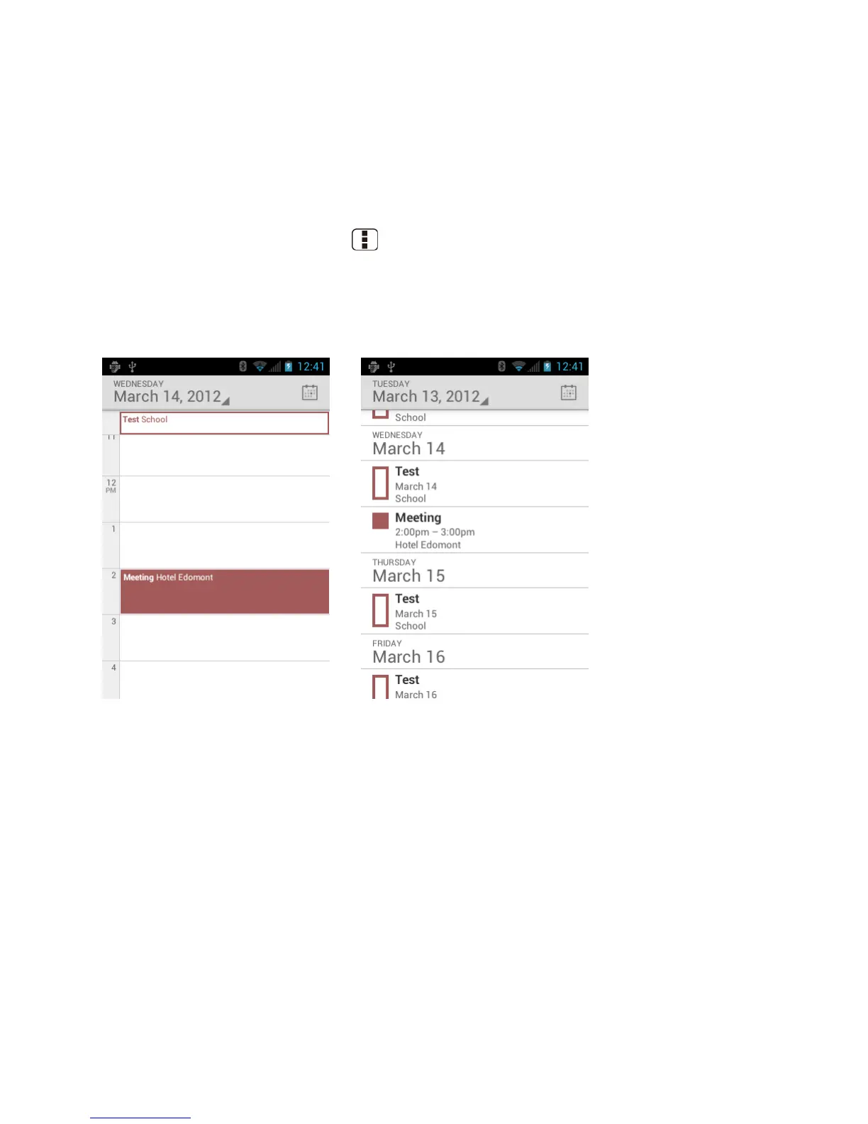 Day view displays a list of the events of one day. Agenda view shows a list of all your events in