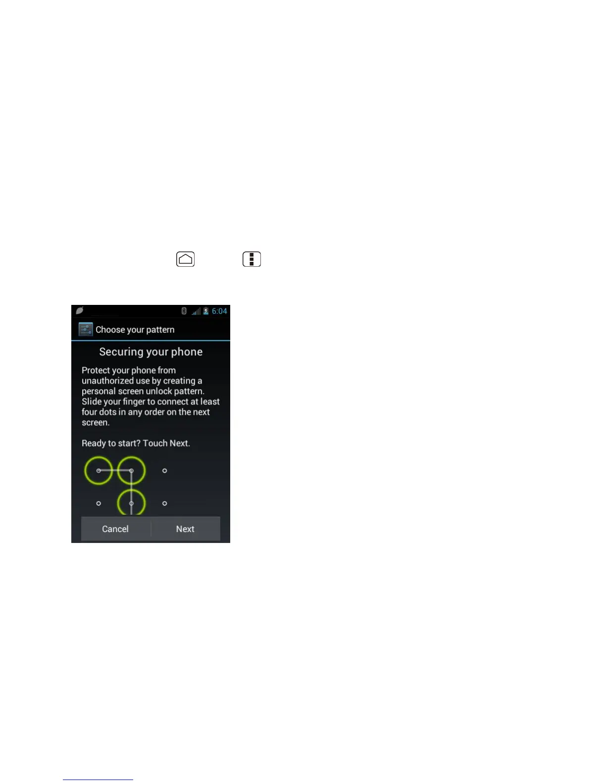 4. Draw the screen unlock pattern by connecting at least four dots in a vertical, horizontal,