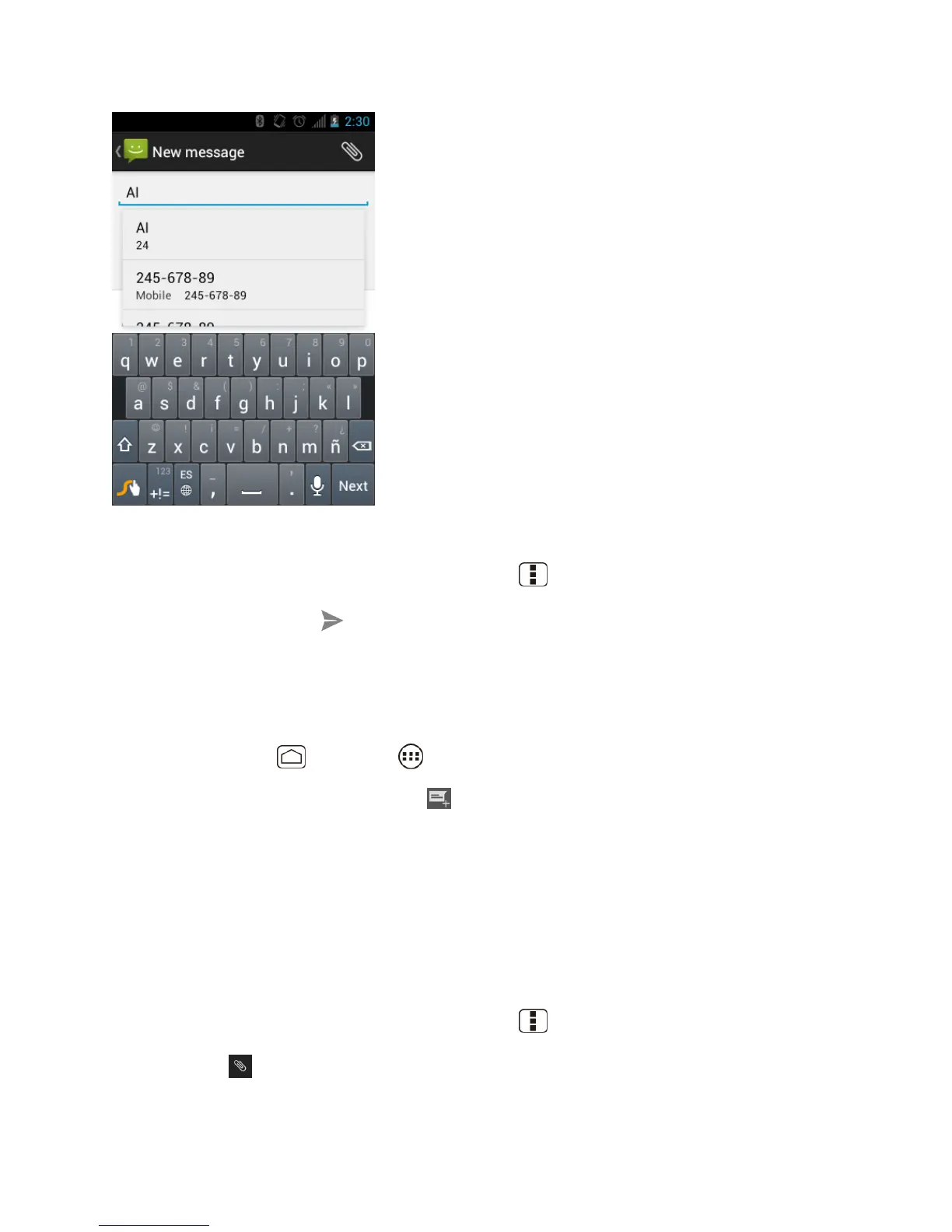 Note: You can add a subject line by pressing Menu , and then touching Add subject.