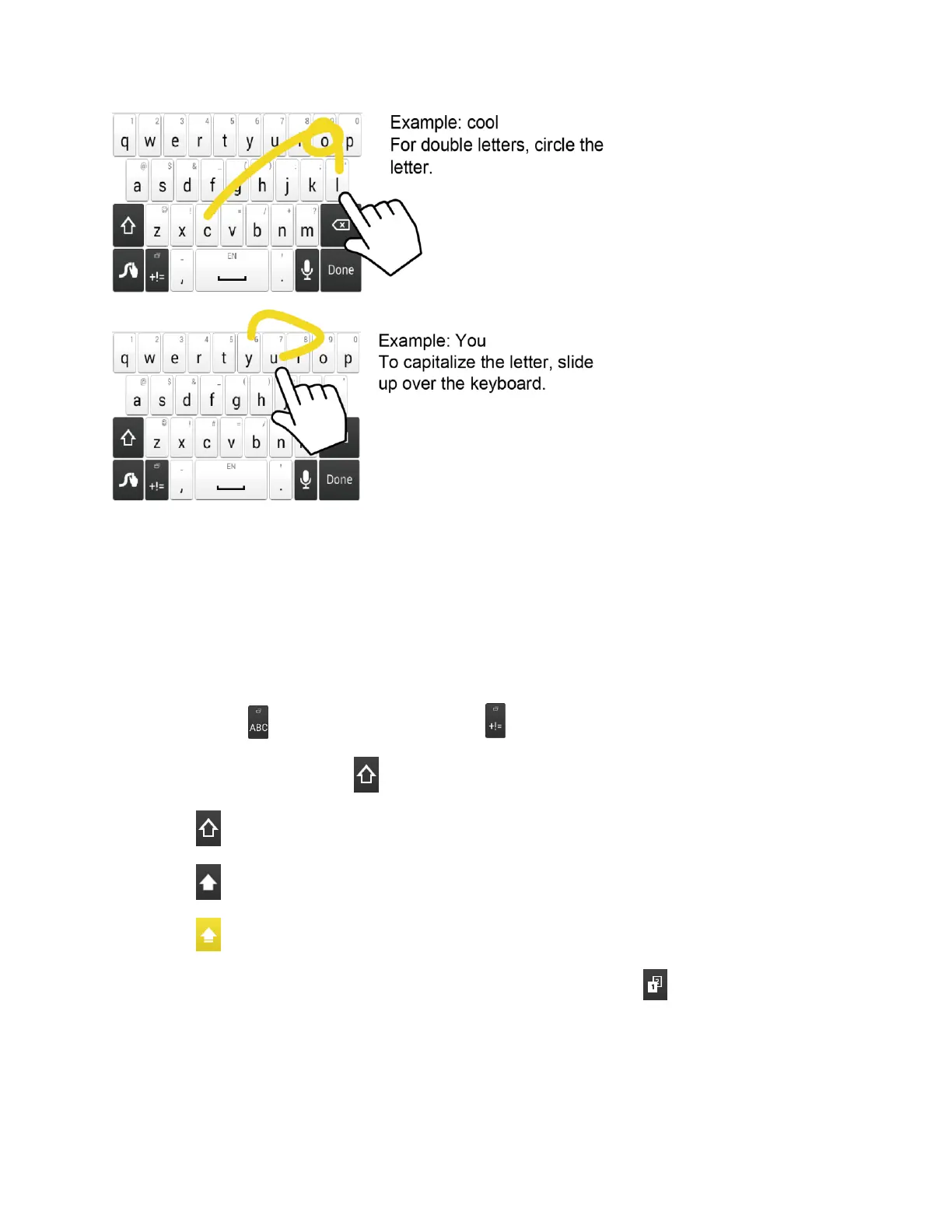 The Number & Symbol keyboards are in two layers. Touch to display the second