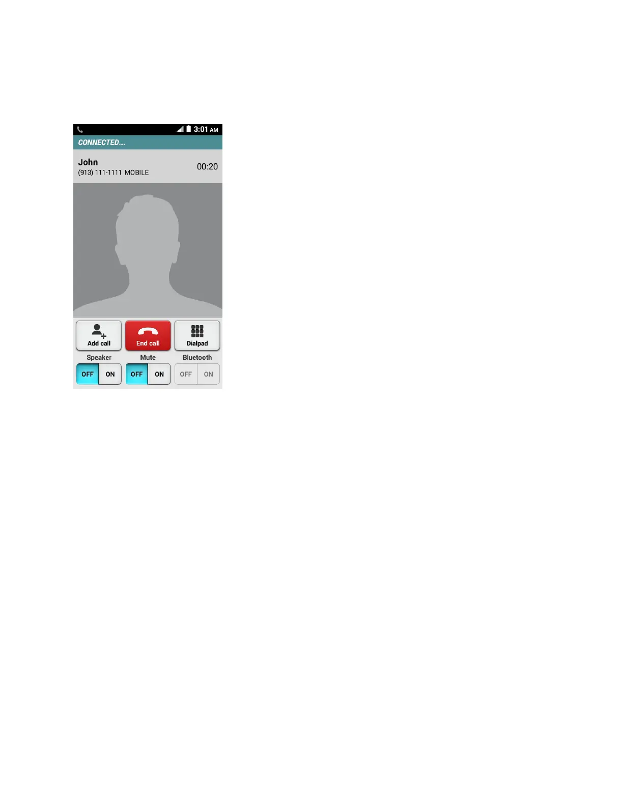 ● Speaker: Route the phone’s audio through the speaker (ON) or through the earpiece
