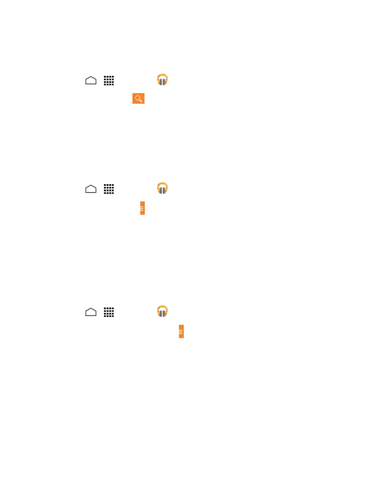 3. Touch one of the following tabs to manage and navigate through Play Music: