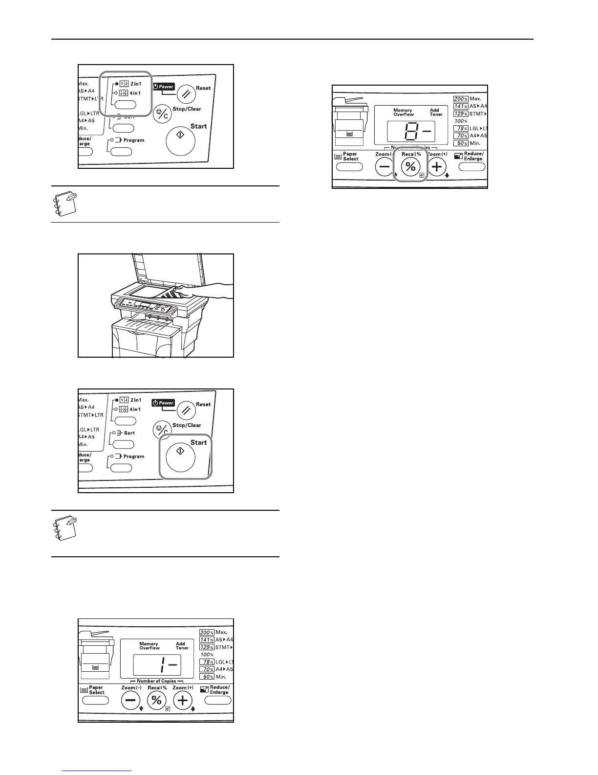 next original and press the Start key. Carry out this step as