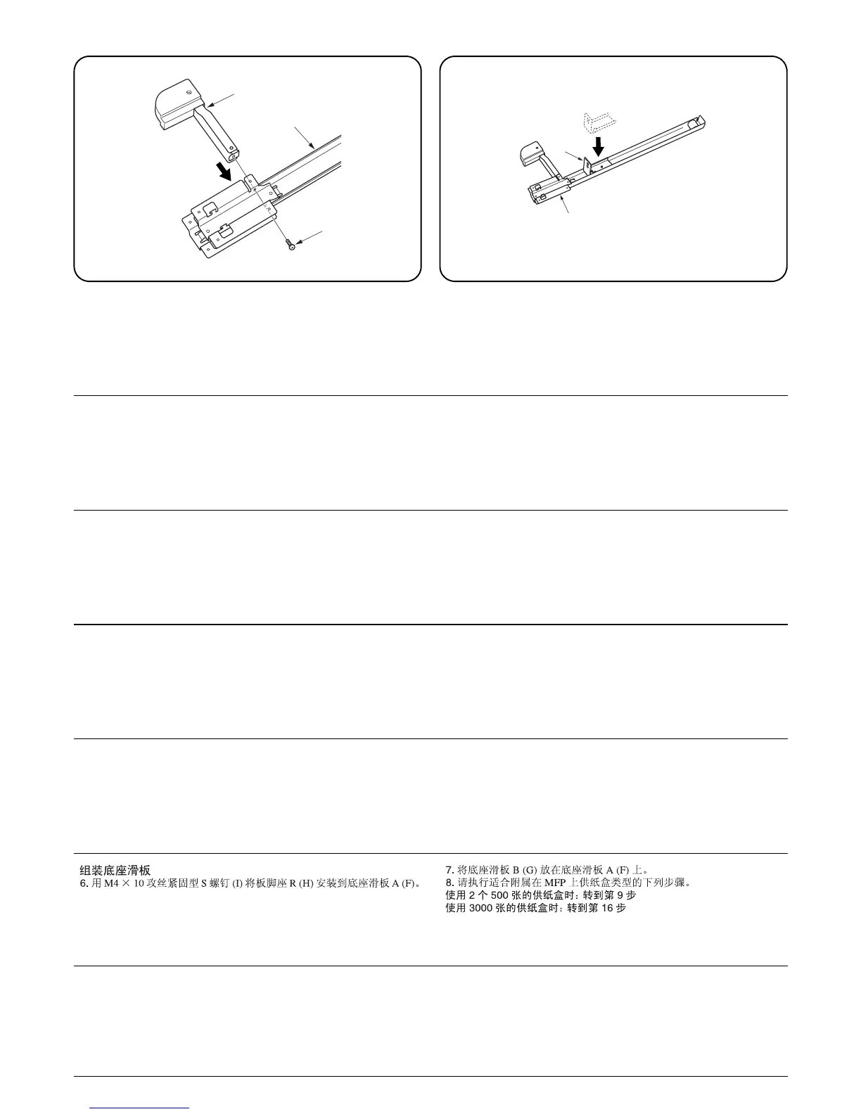 6. Install plate foot R (H) to base slider A (F) using M4 × 10 tap Tight S