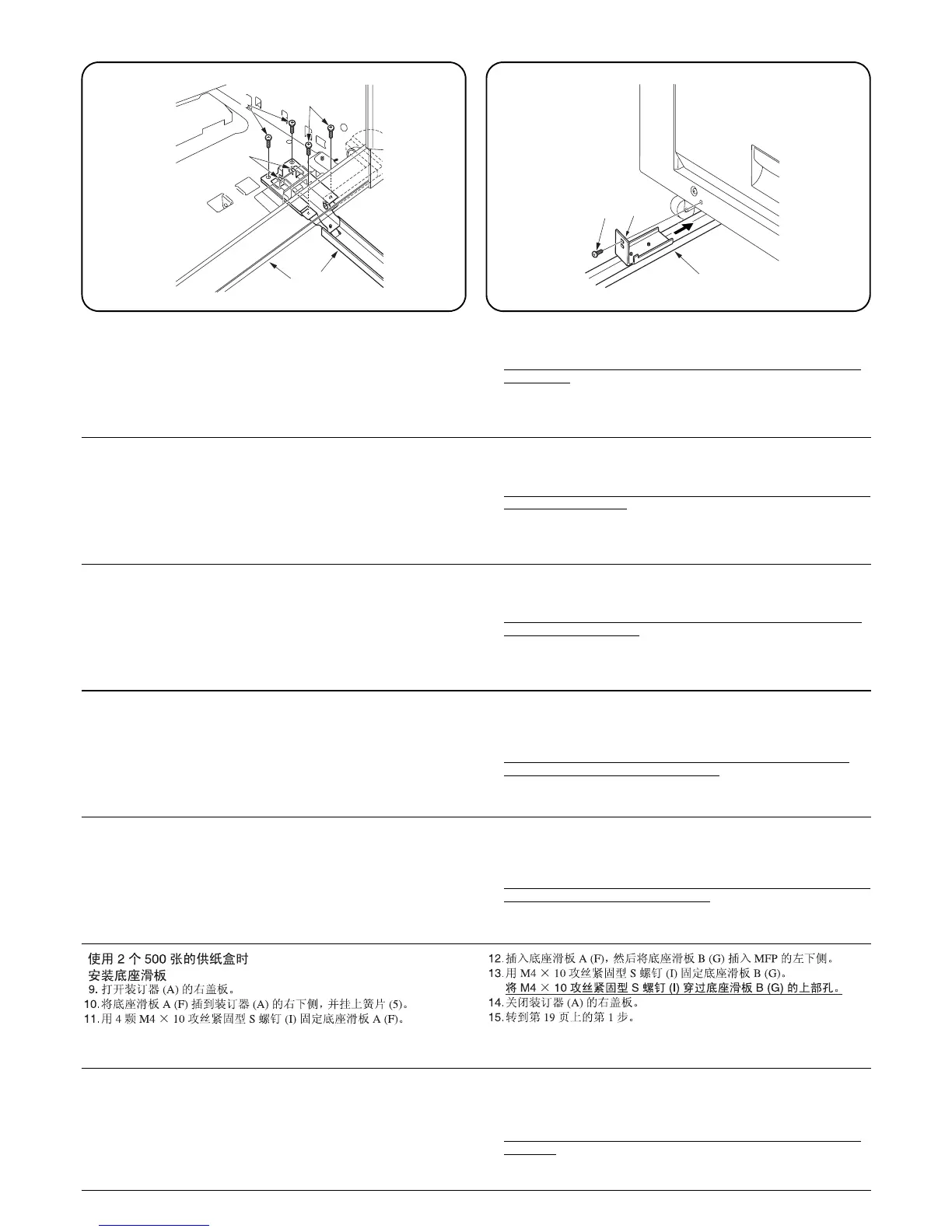 10.Insert base slider A (F) into the lower right of the document finisher (A)