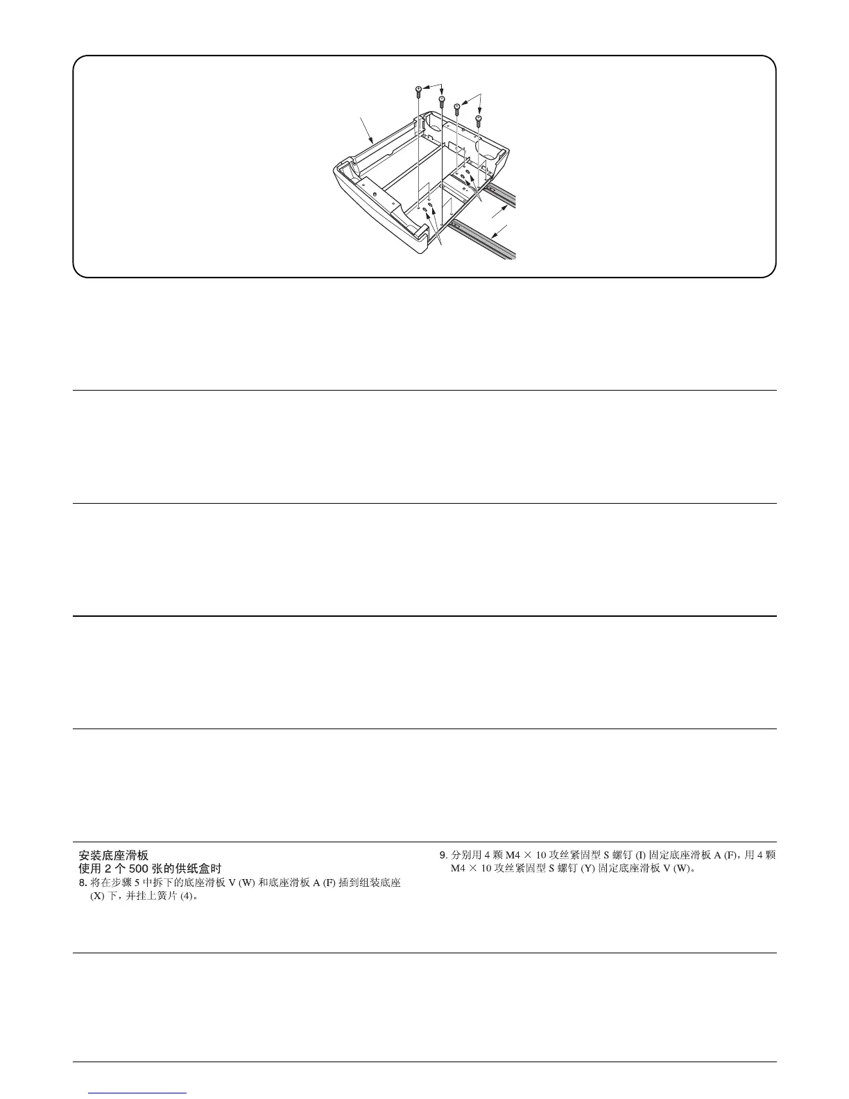 base slider V (W) with four M4 × 10 tap Tight S screws (Y) respectively.