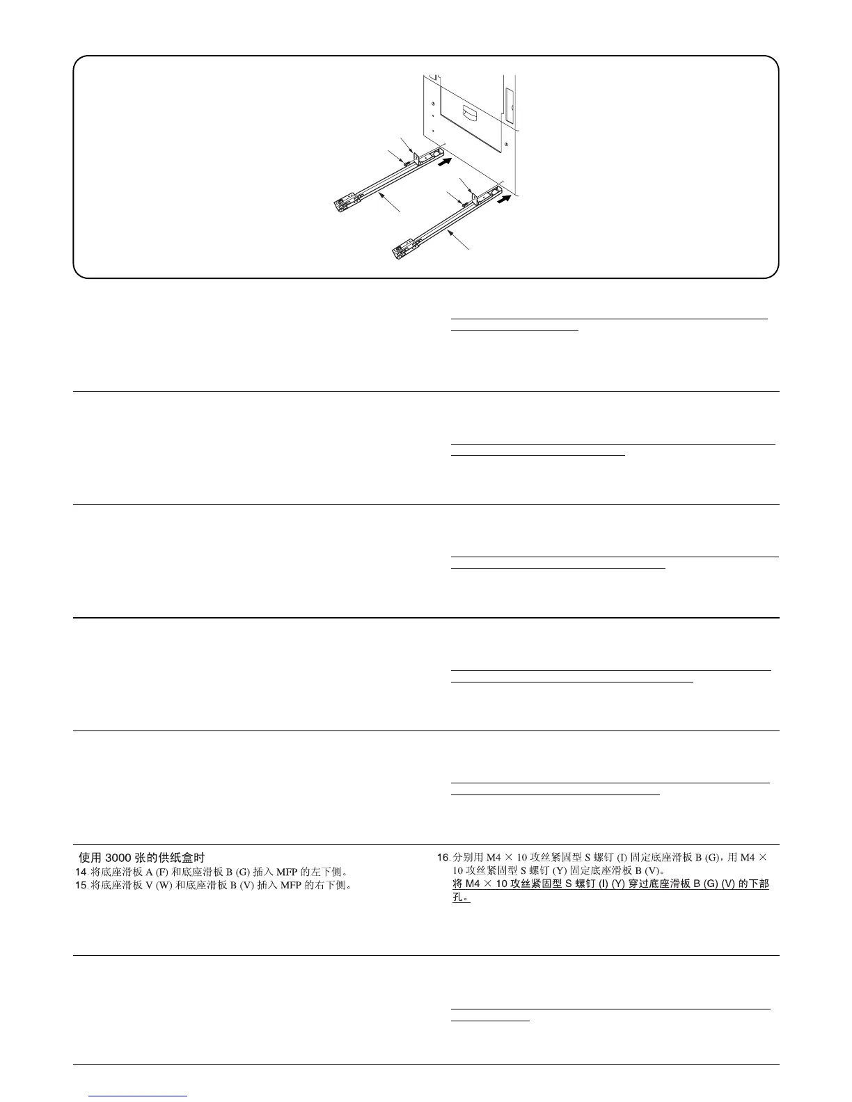 14.ベーススライダ A(F) とベーススライダ B(G) を MFP 本体の左下へ差し