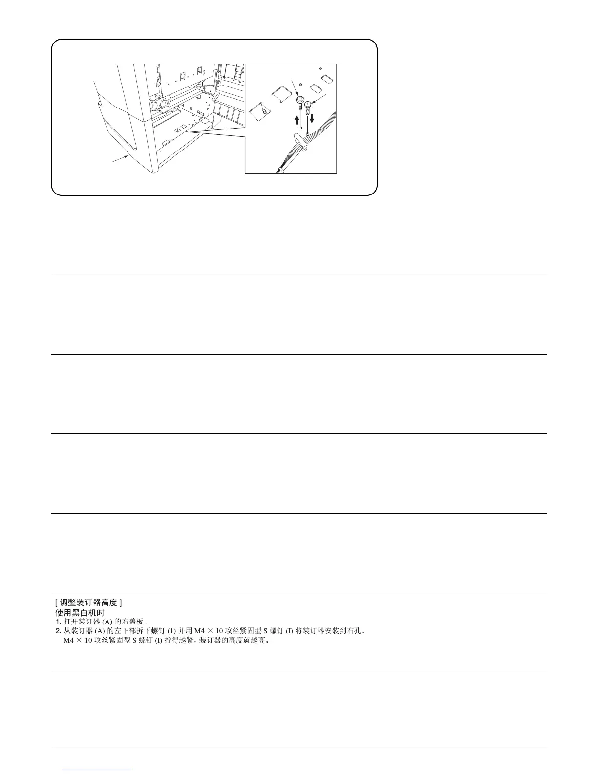 The more tightening M4 × 10 tap Tight S Screw (I), the more document finisher height increases.