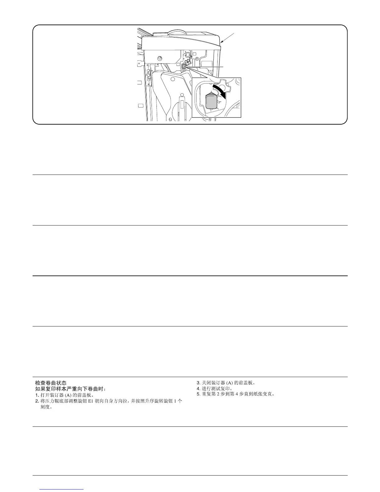 2. 加圧ローラ下調整つまみ E1 を手前に引き、数字の大きい方向に 1 目盛