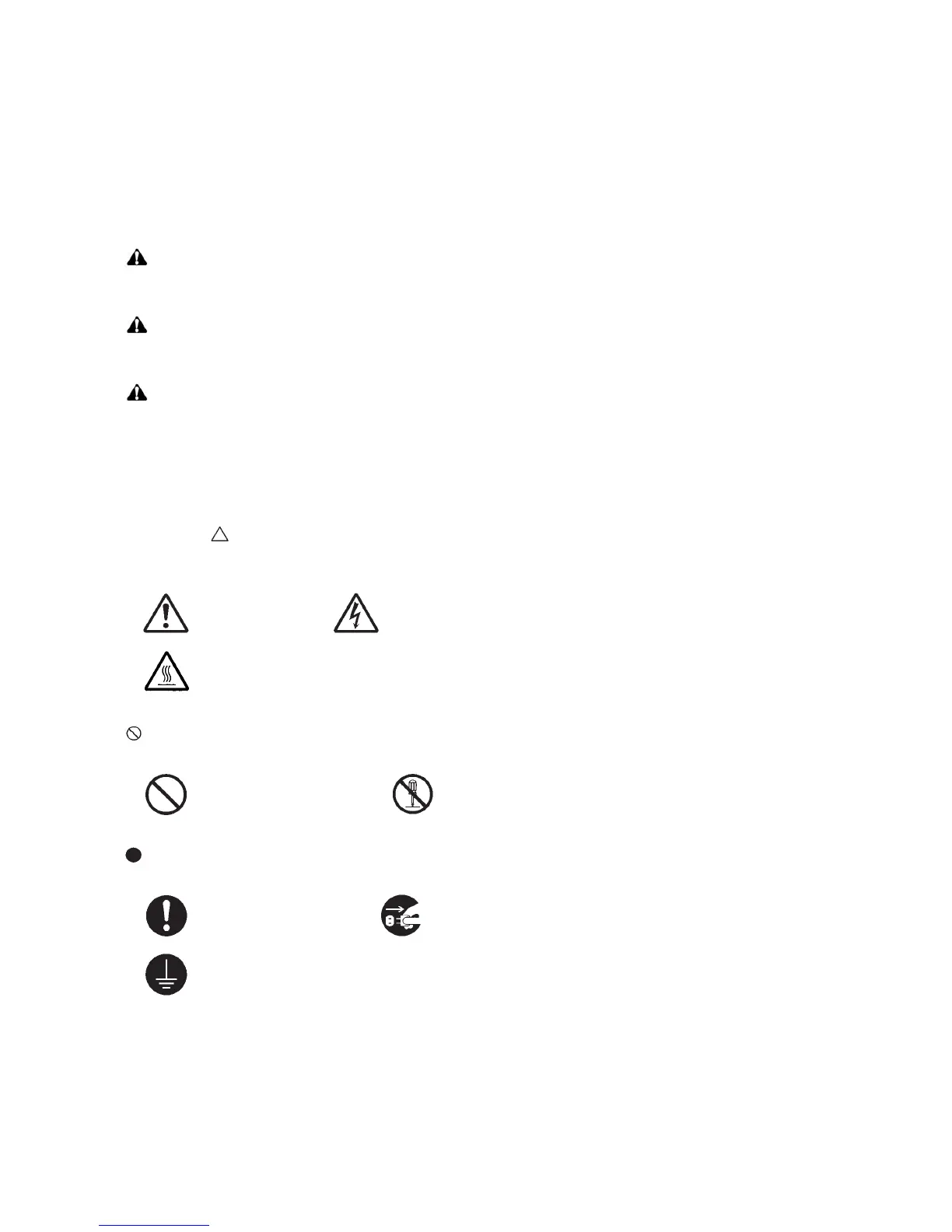 The triangle ( ) symbol indicates a warning including danger and caution. The specific point of attention is