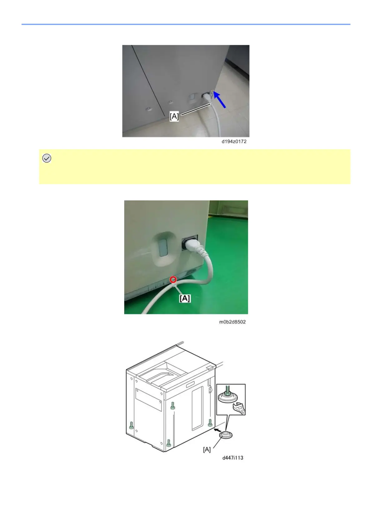 Secure the power cord with the clamp [A]. (screw x1, harness clamp x1)