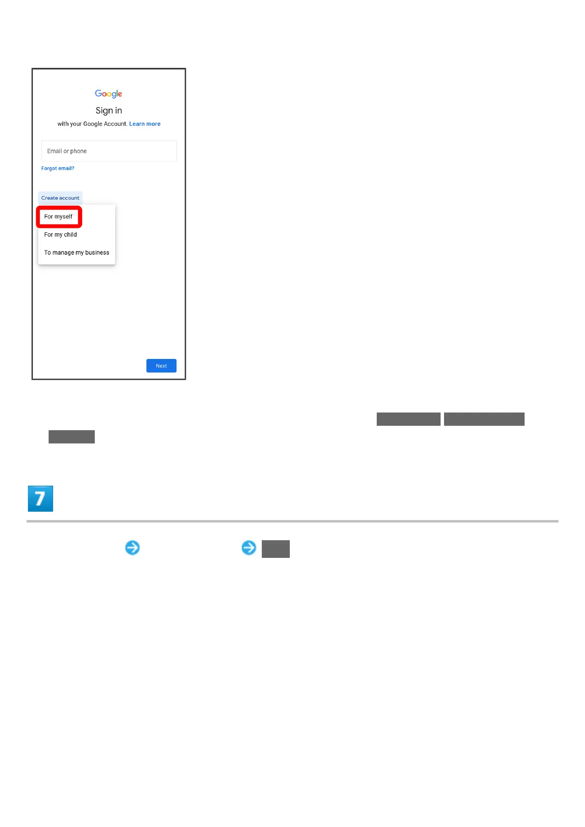 To create an account for a child or business management, Tap For my child/To manage my