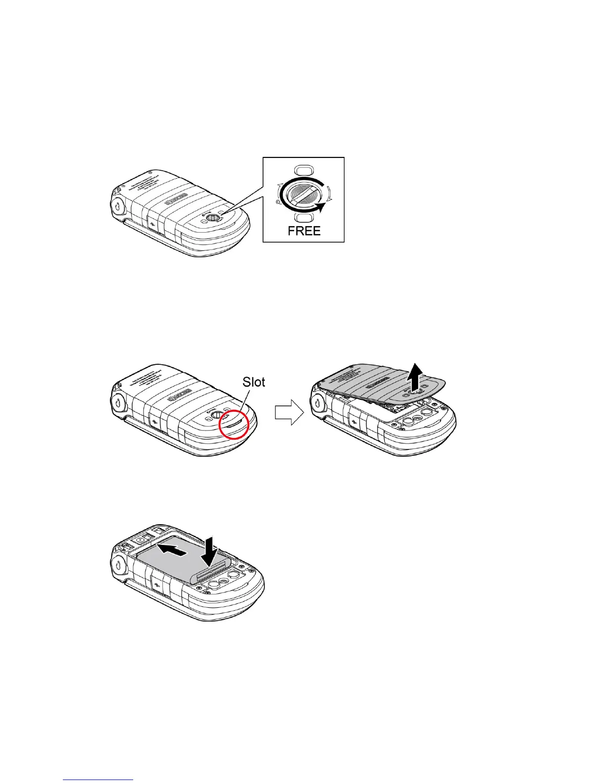 Note: The battery door screw is permanently mounted on the door and cannot be