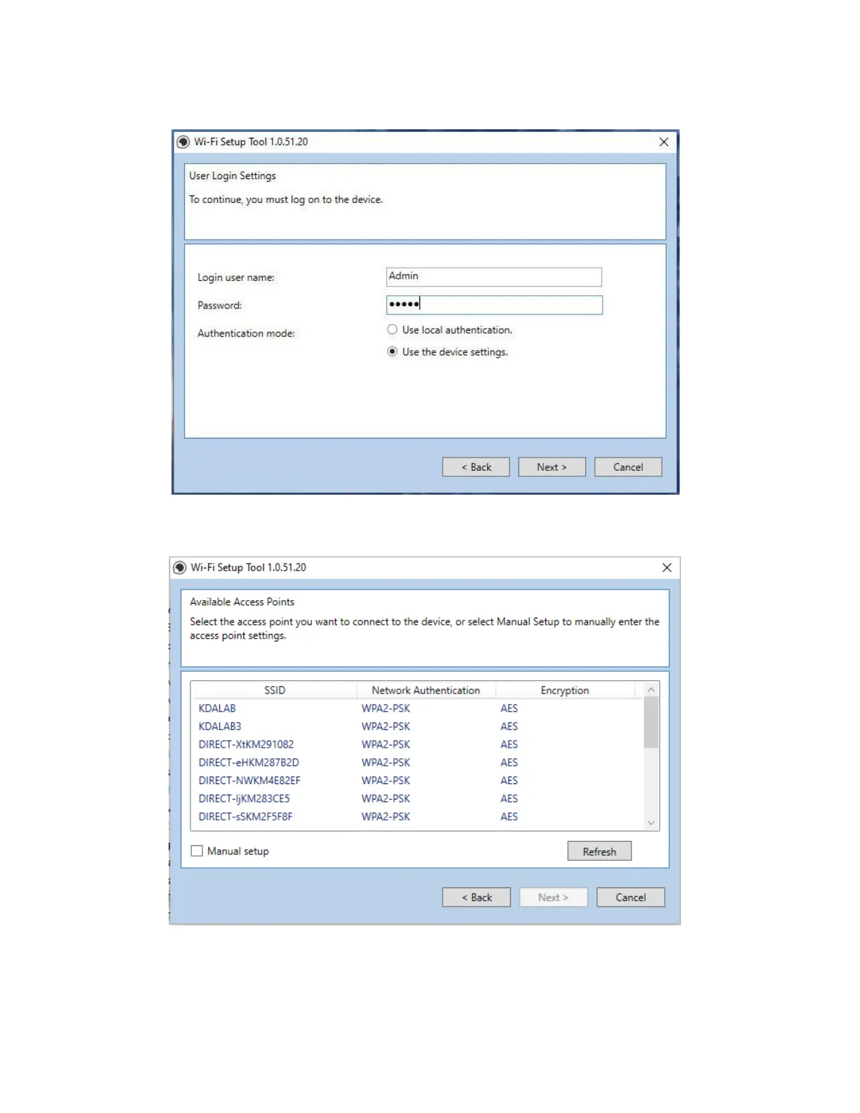 Enter Admin for Username and Admin for password. Select Use device settings.