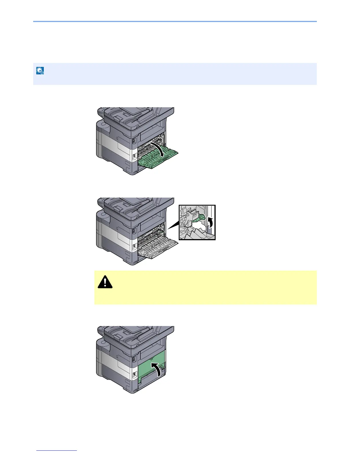 The fuser unit inside the machine is hot. Do not touch it with your hands as it may