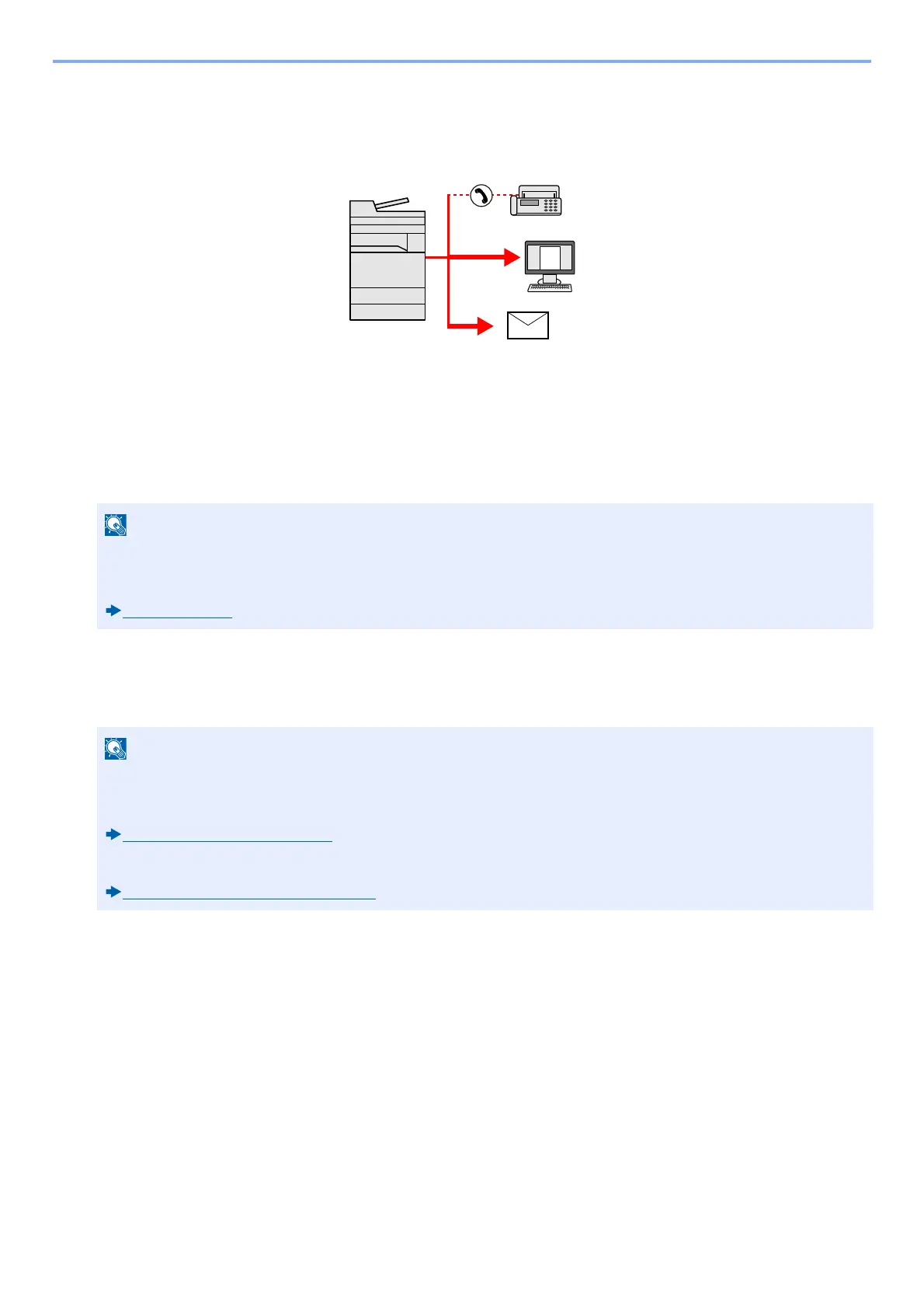 You can specify destinations that combine E-mail addresses, folders (SMB or FTP) and fax numbers (Fax functionality
