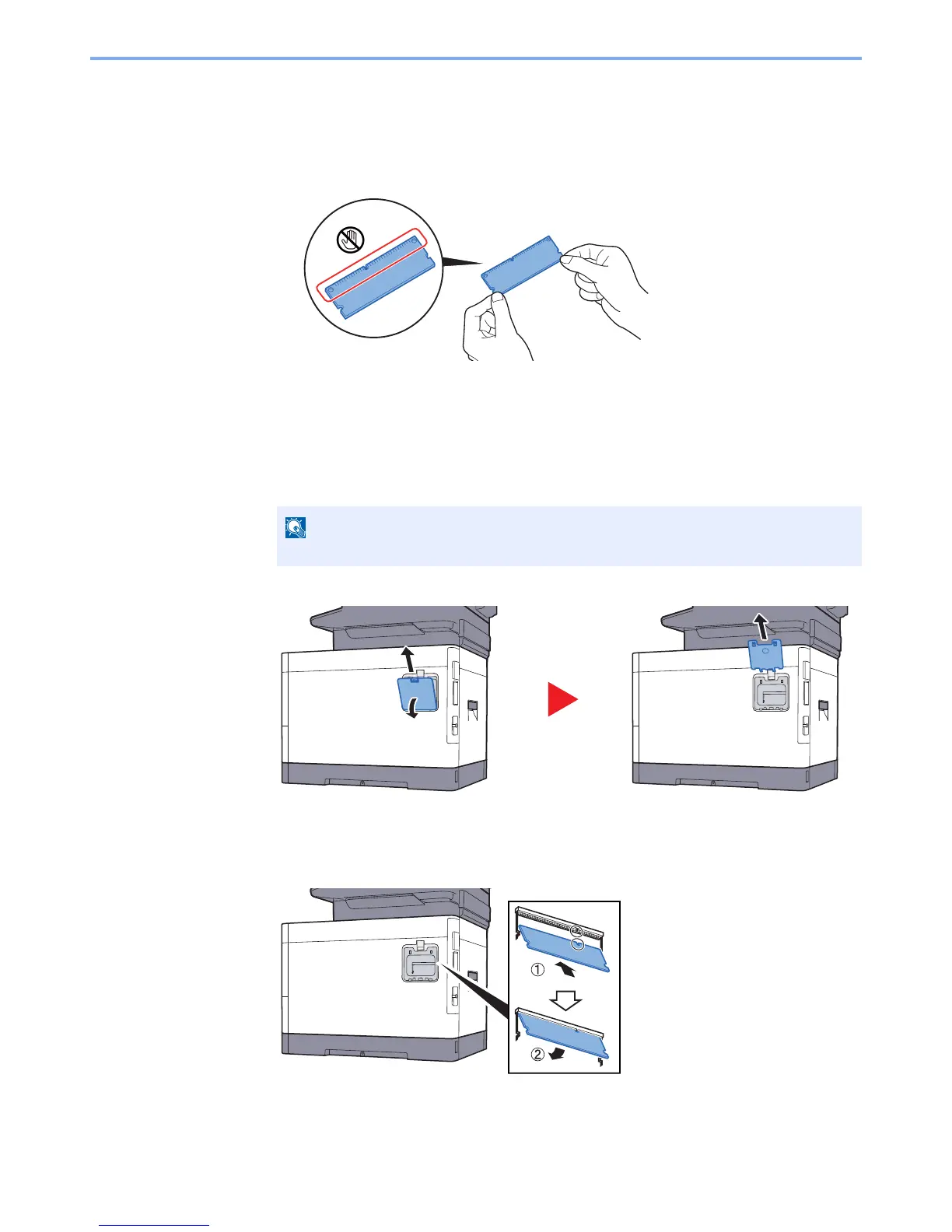 To protect electronic parts, discharge static electricity from your body by touching a water pipe (faucet) or other large