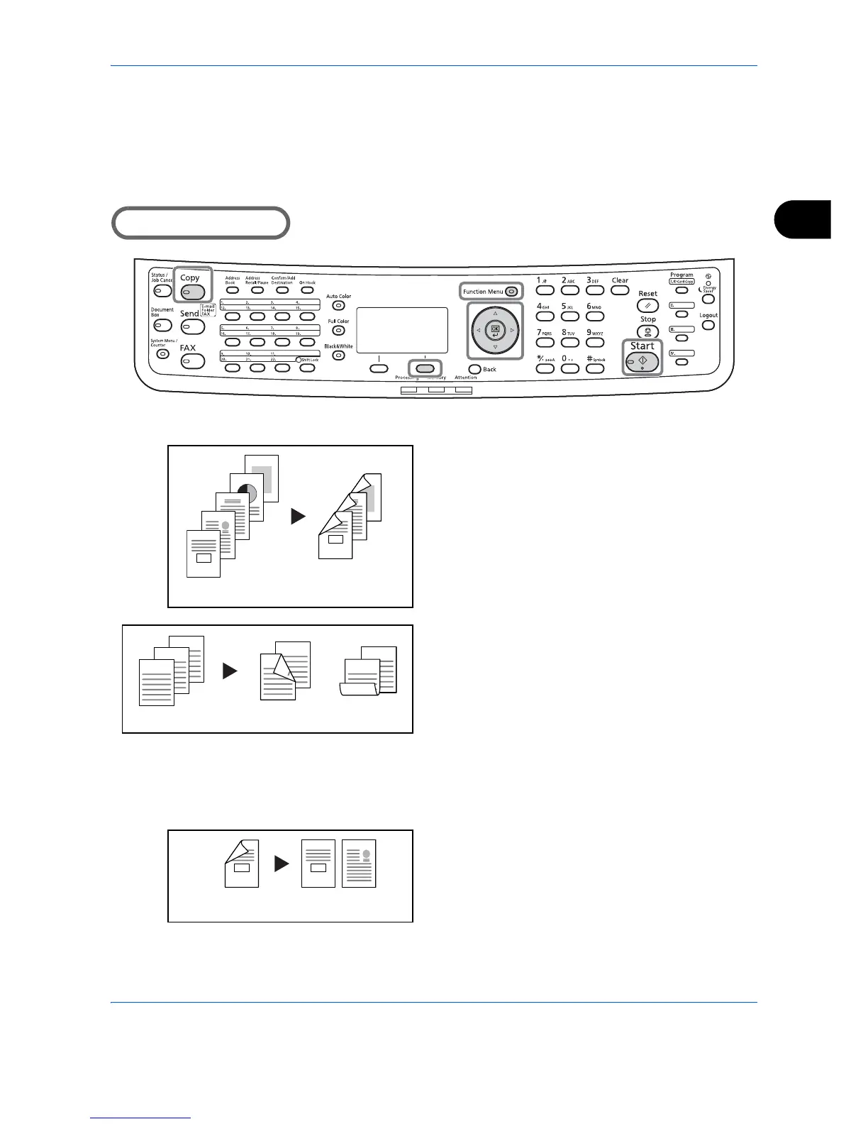 You can also create single-sided copies from two-sided originals or originals with facing pages such as books.