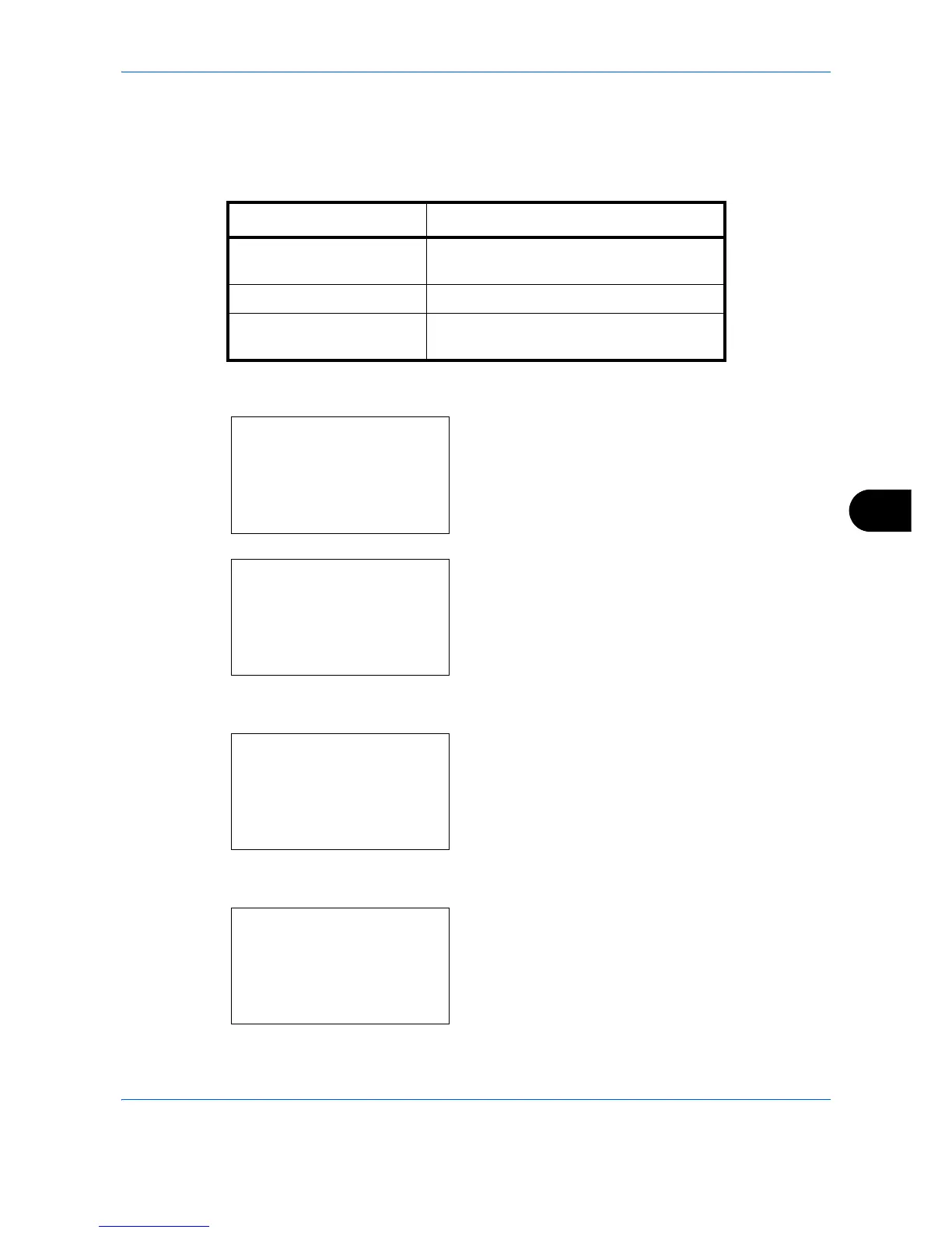 The table below shows the available settings.